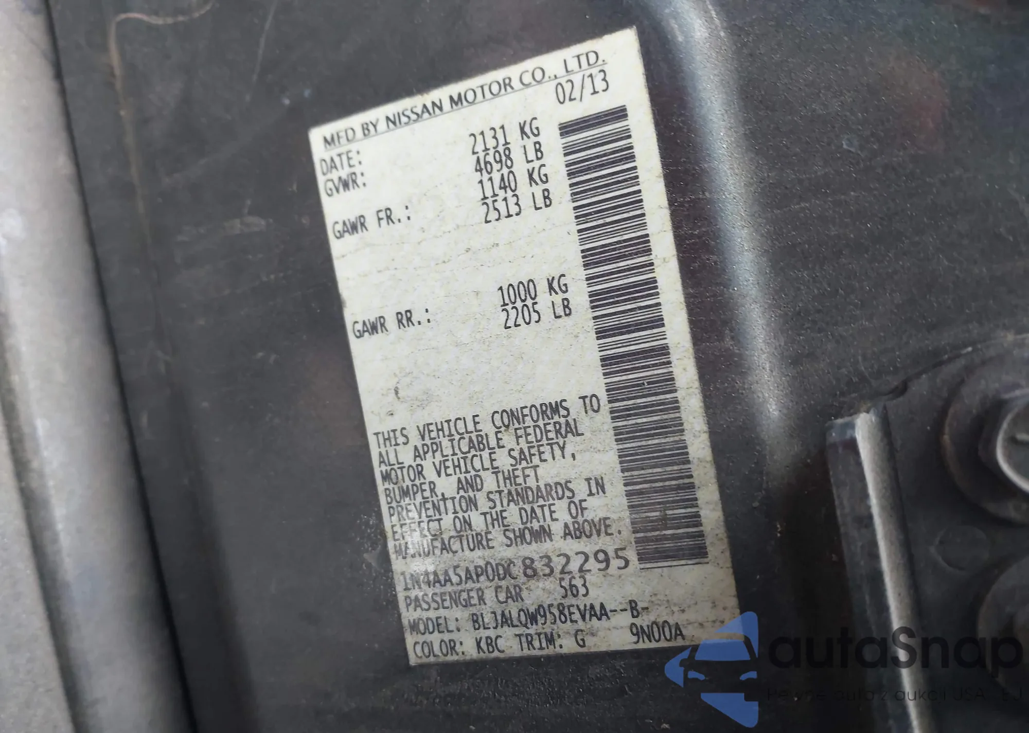 LOT: 44207468 VIN: 1N4AA5AP0DC832295