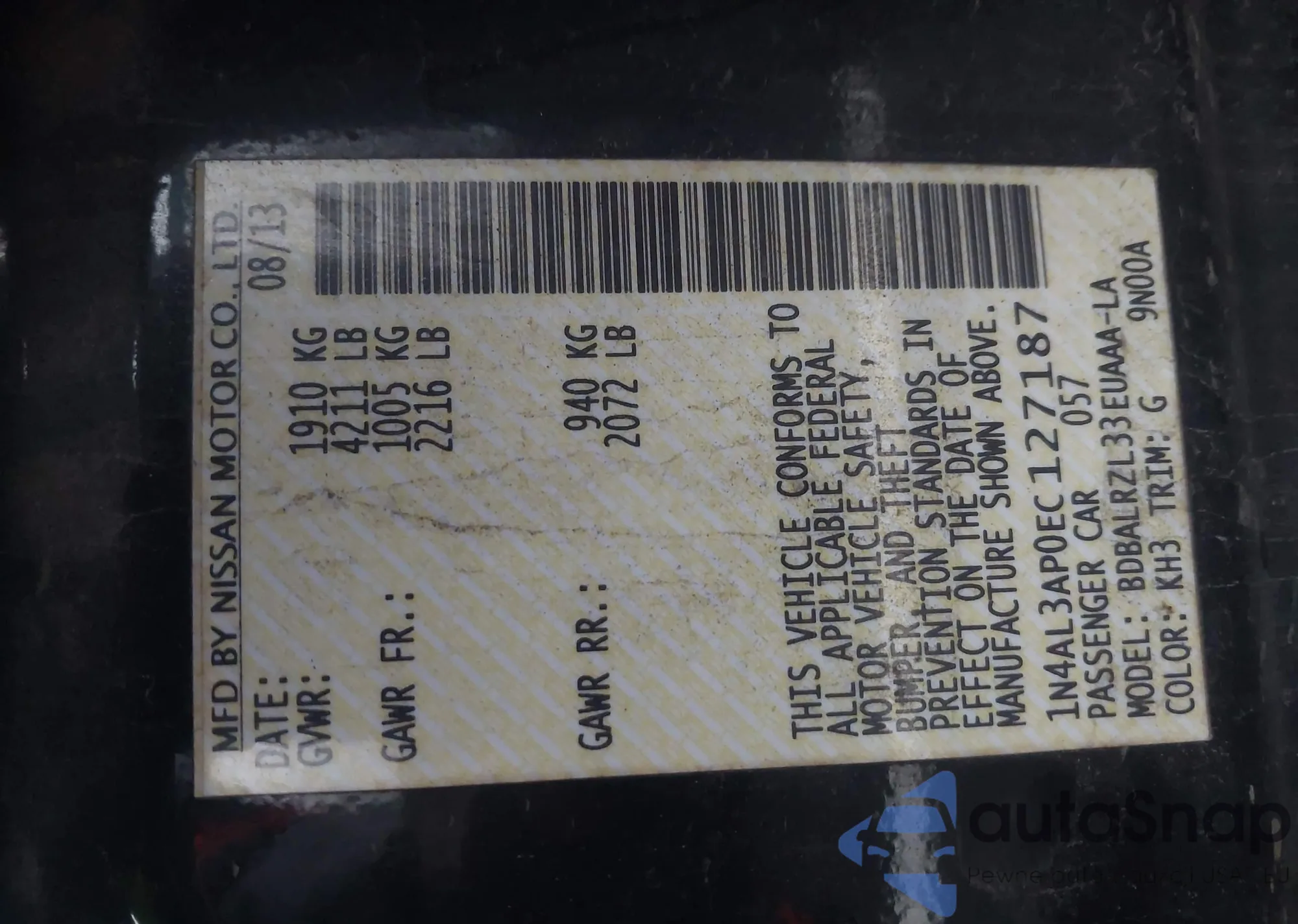 • VIN 1N4AA5AP6DC819227