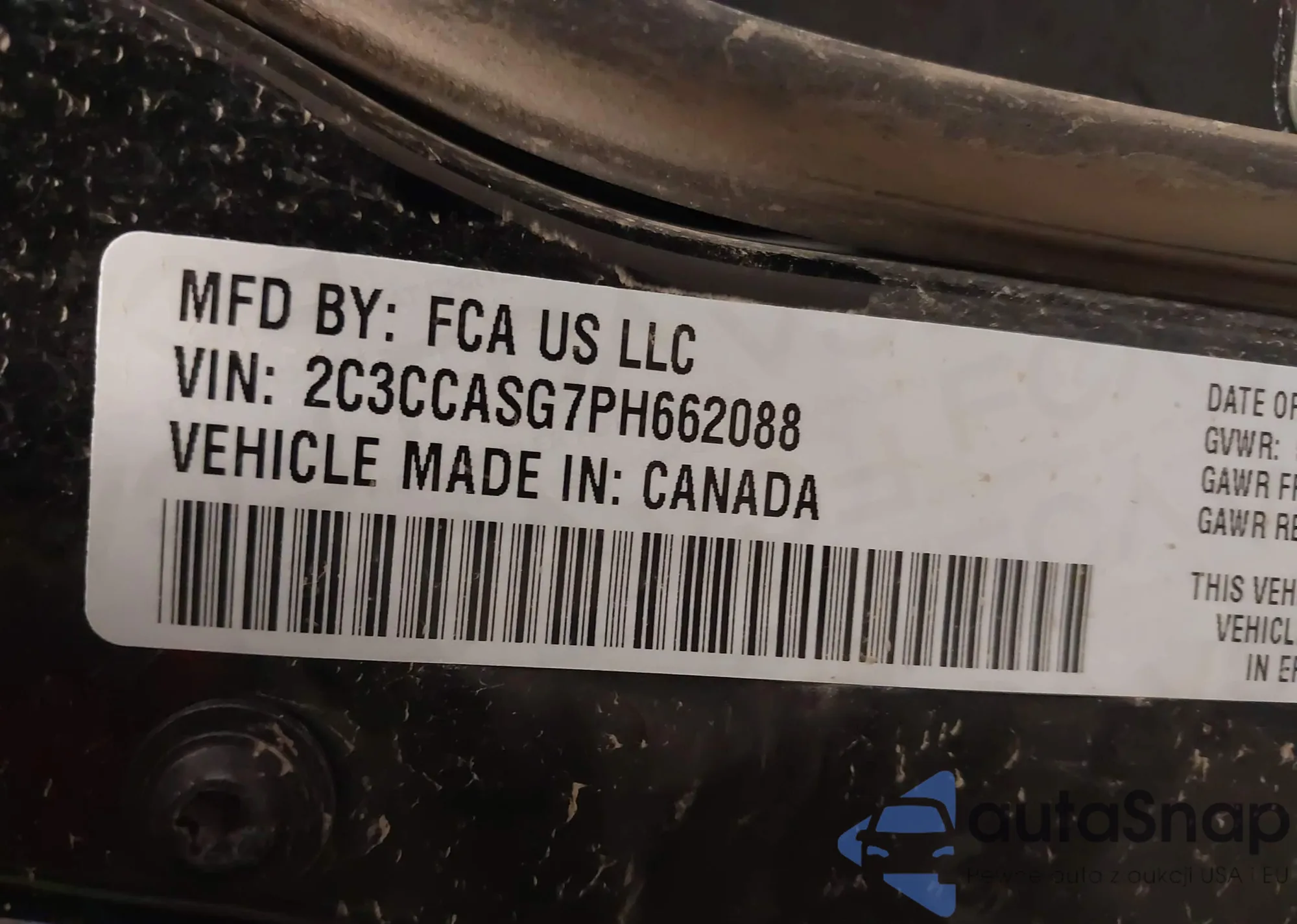 • VIN 2C3CCASG7PH662088