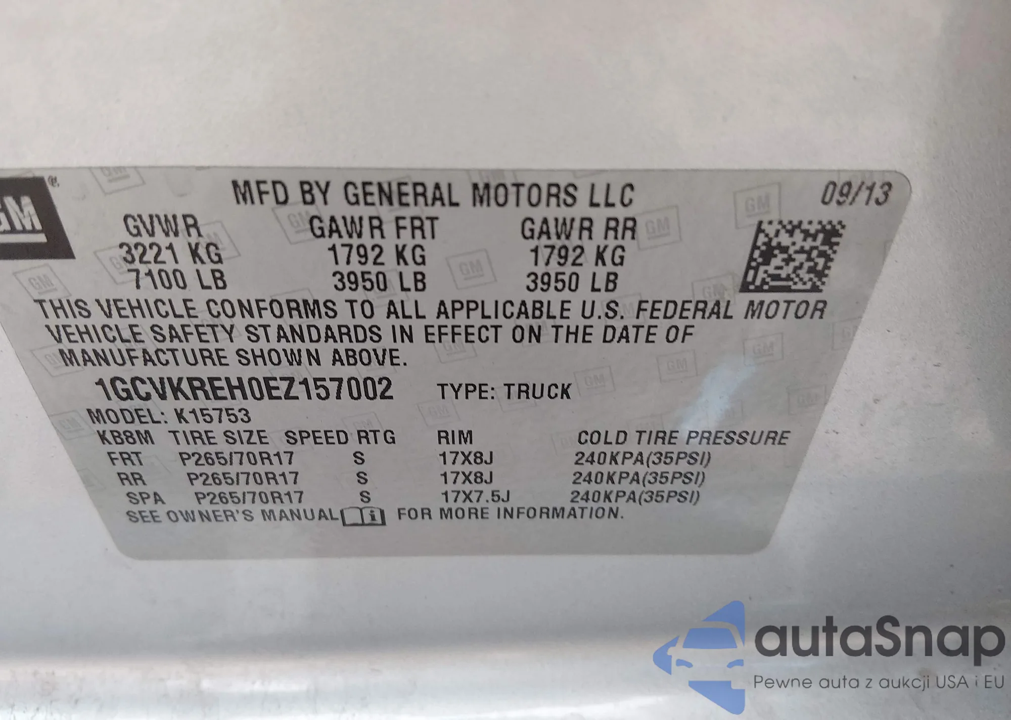 • VIN 1GCVKREH0EZ157002