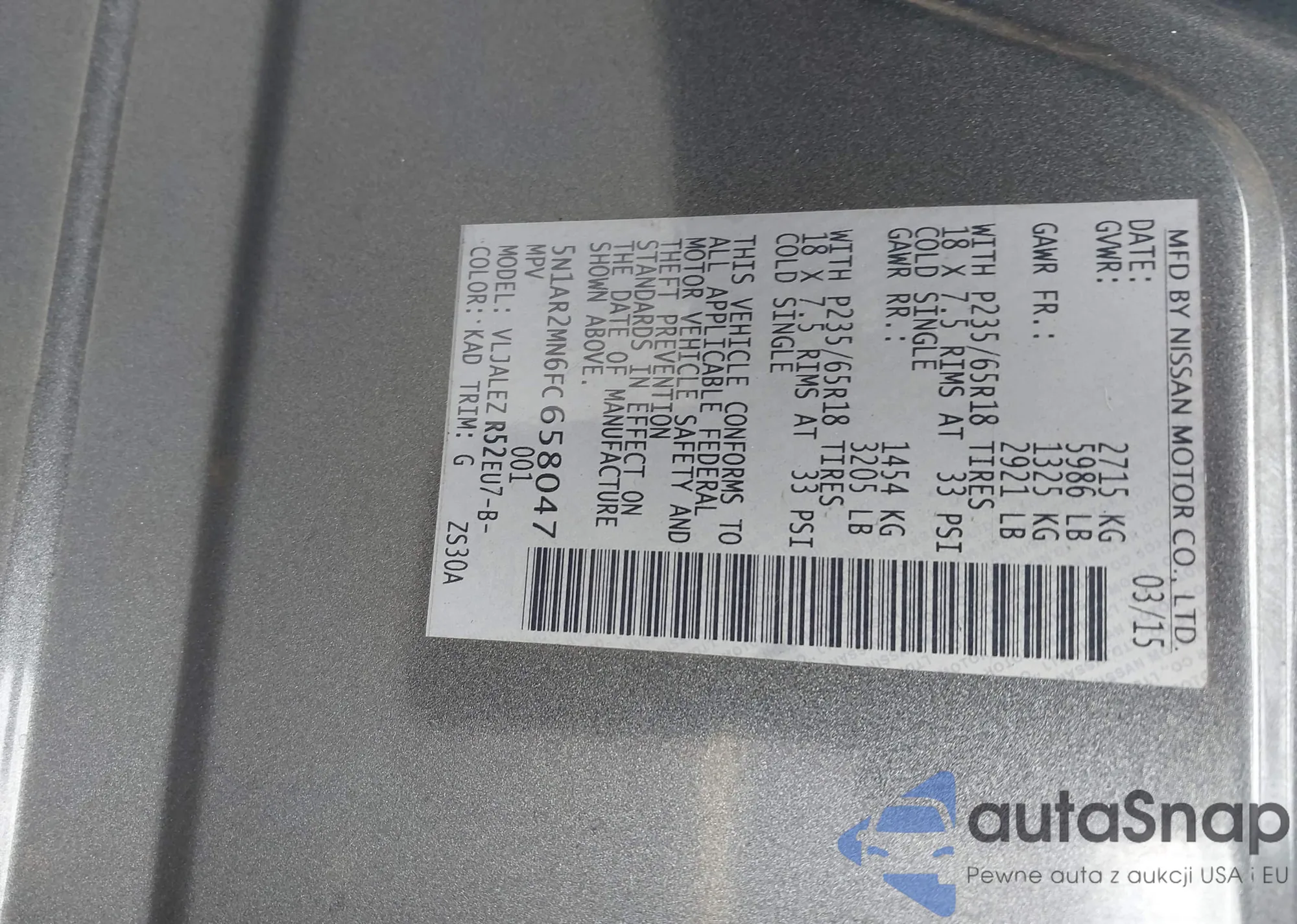 LOT: 44092728 VIN: 5N1AR2MN6FC658047