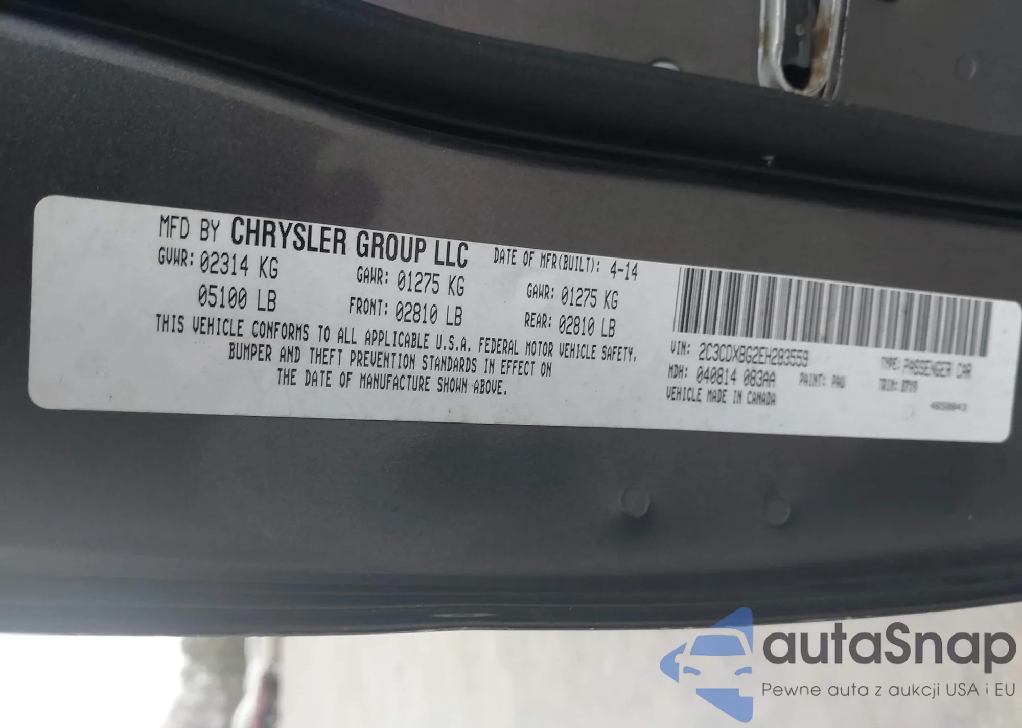 • VIN 2C3CDXHG5PH554625