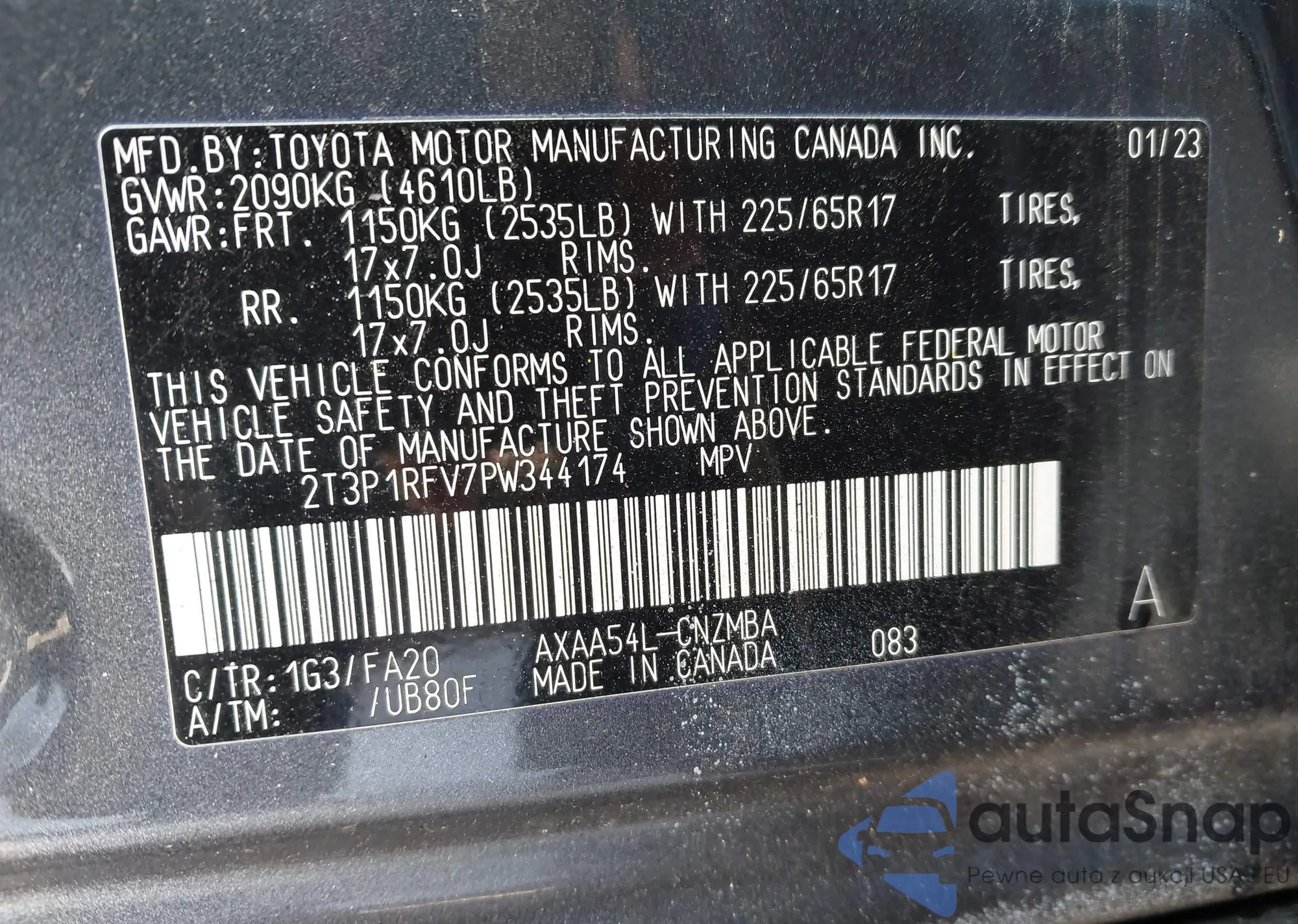 • VIN 2T3P1RFV7PW344174