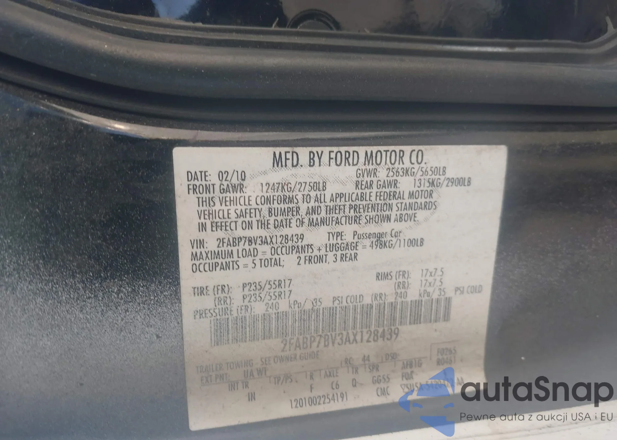 • VIN 2FABP7BV3AX128439