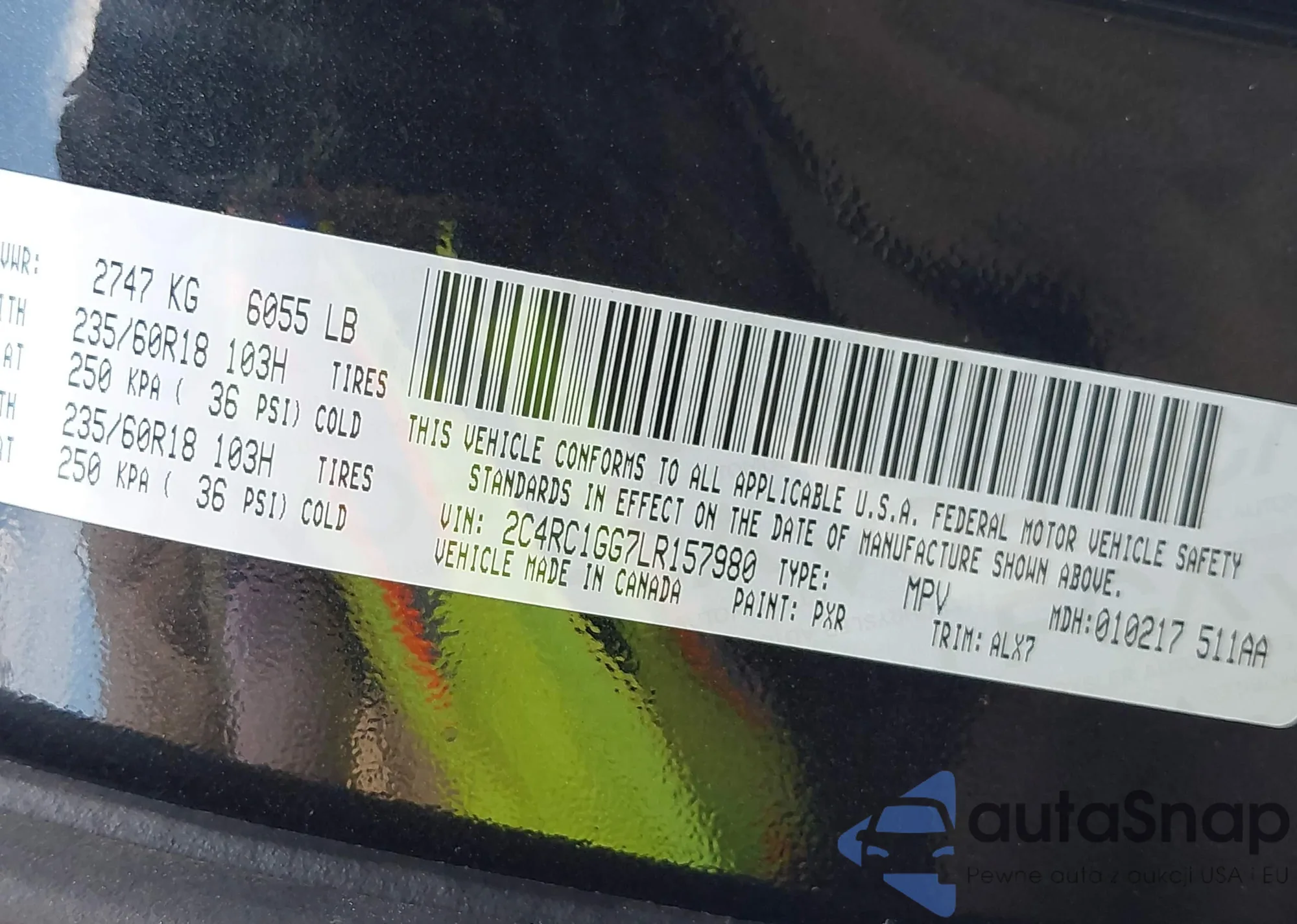 • VIN 2C4RC1GG7LR157980