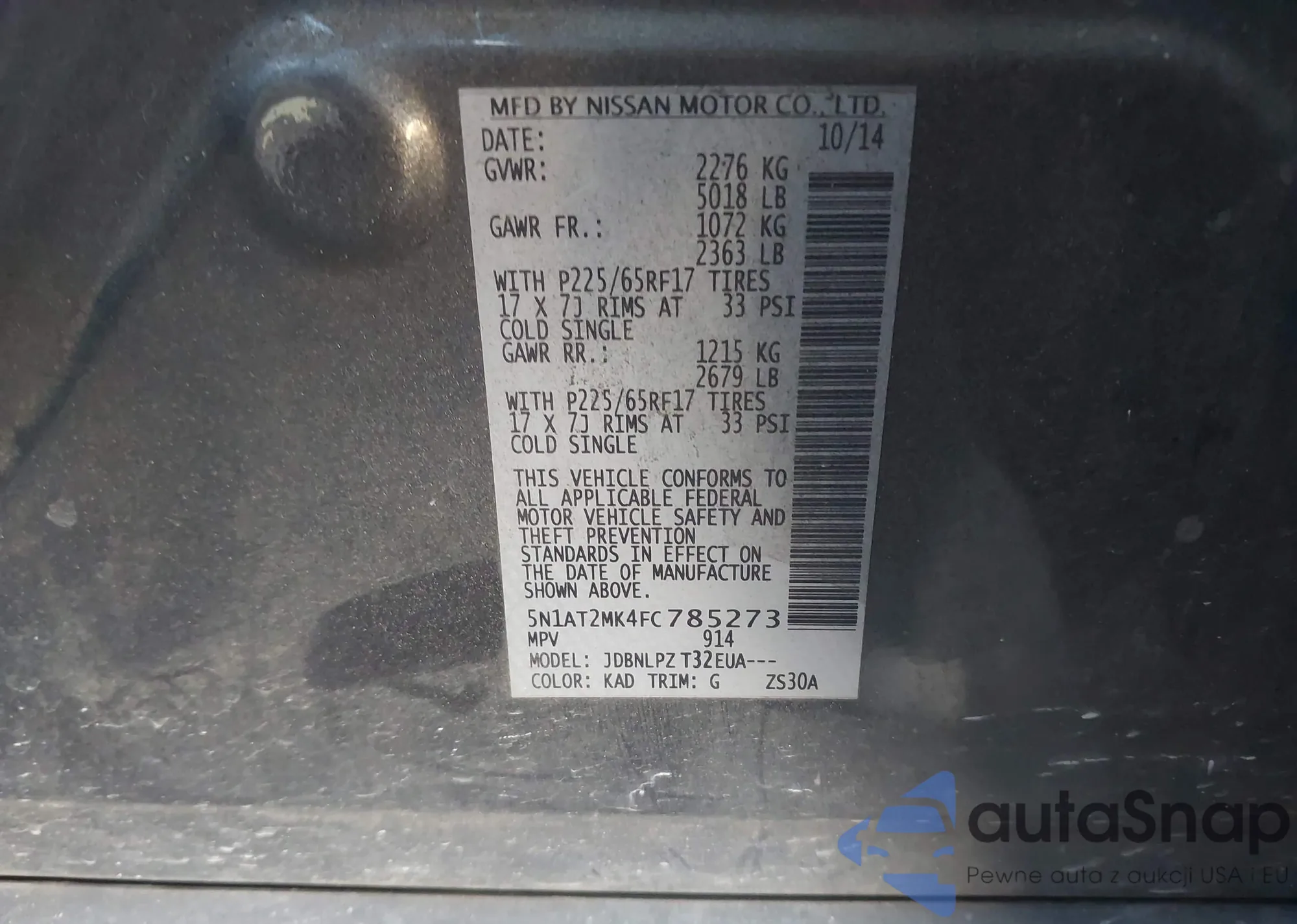 • VIN 5N1AT2MK4FC785273