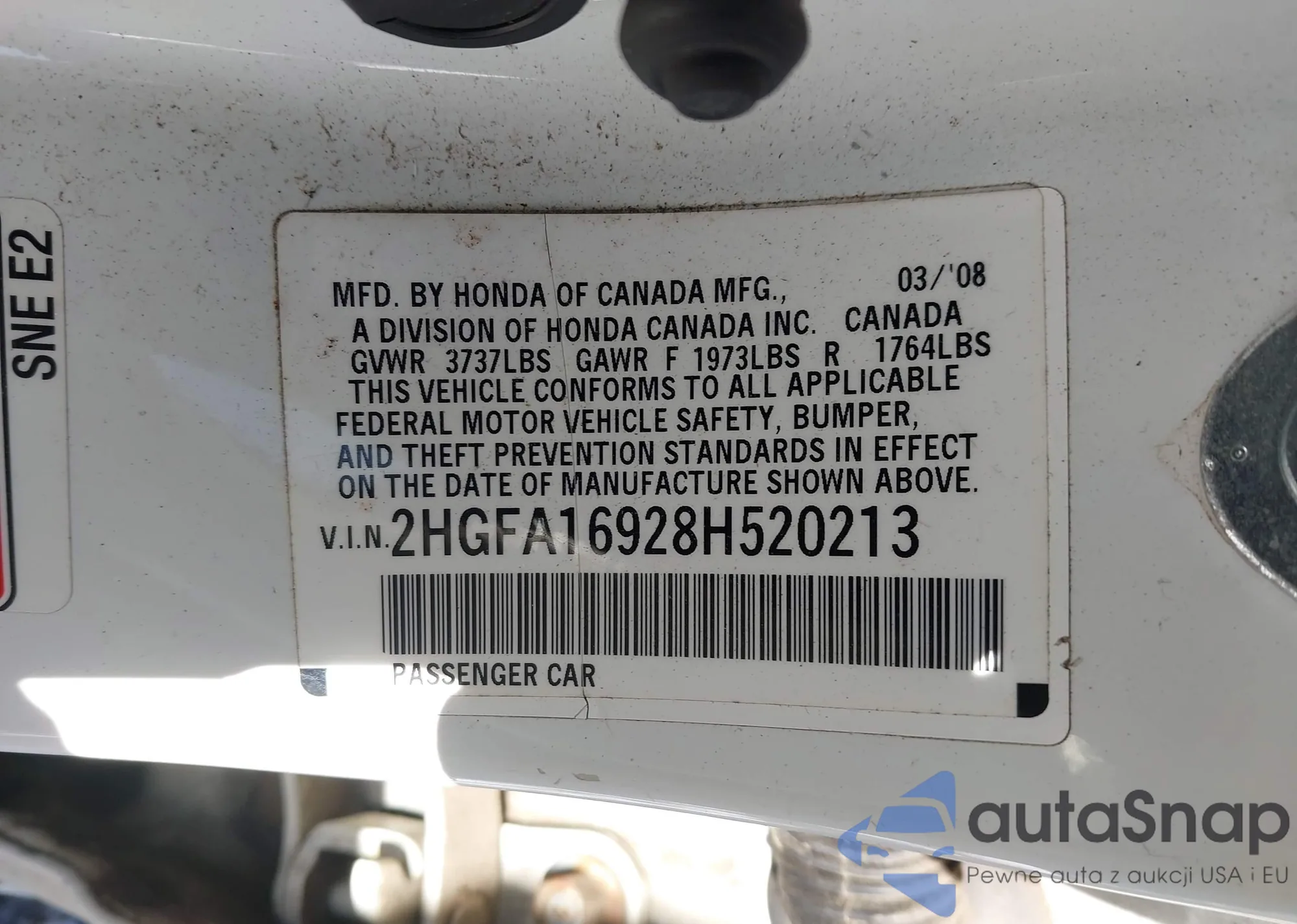 • VIN 2HGFA16928H520213