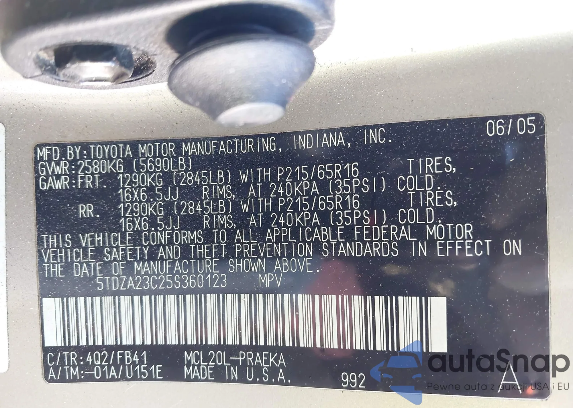 LOT: 44199435 VIN: 5TDZA23C25S360123