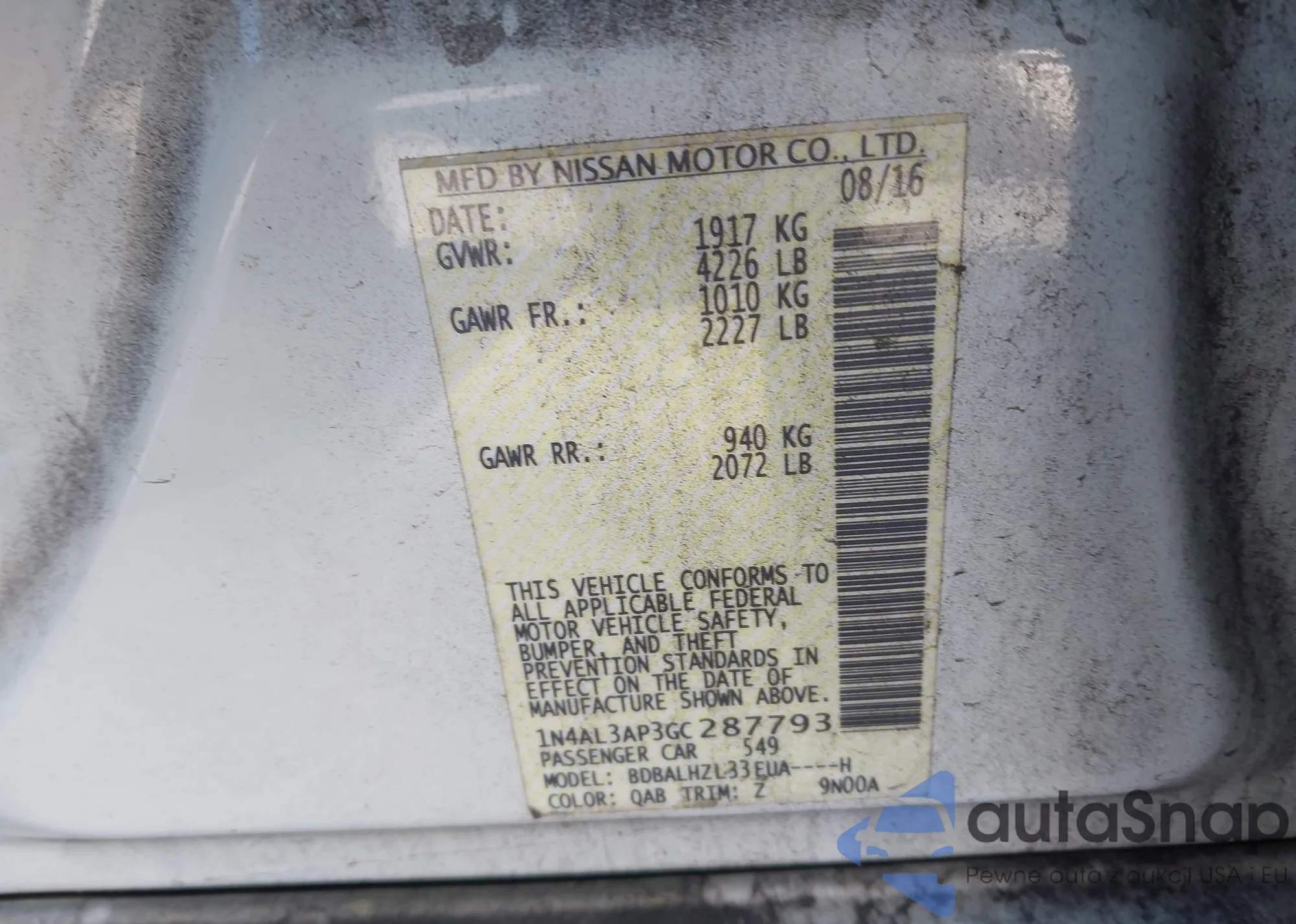 LOT: 44237563 VIN: 1N4AL3AP3GC287793