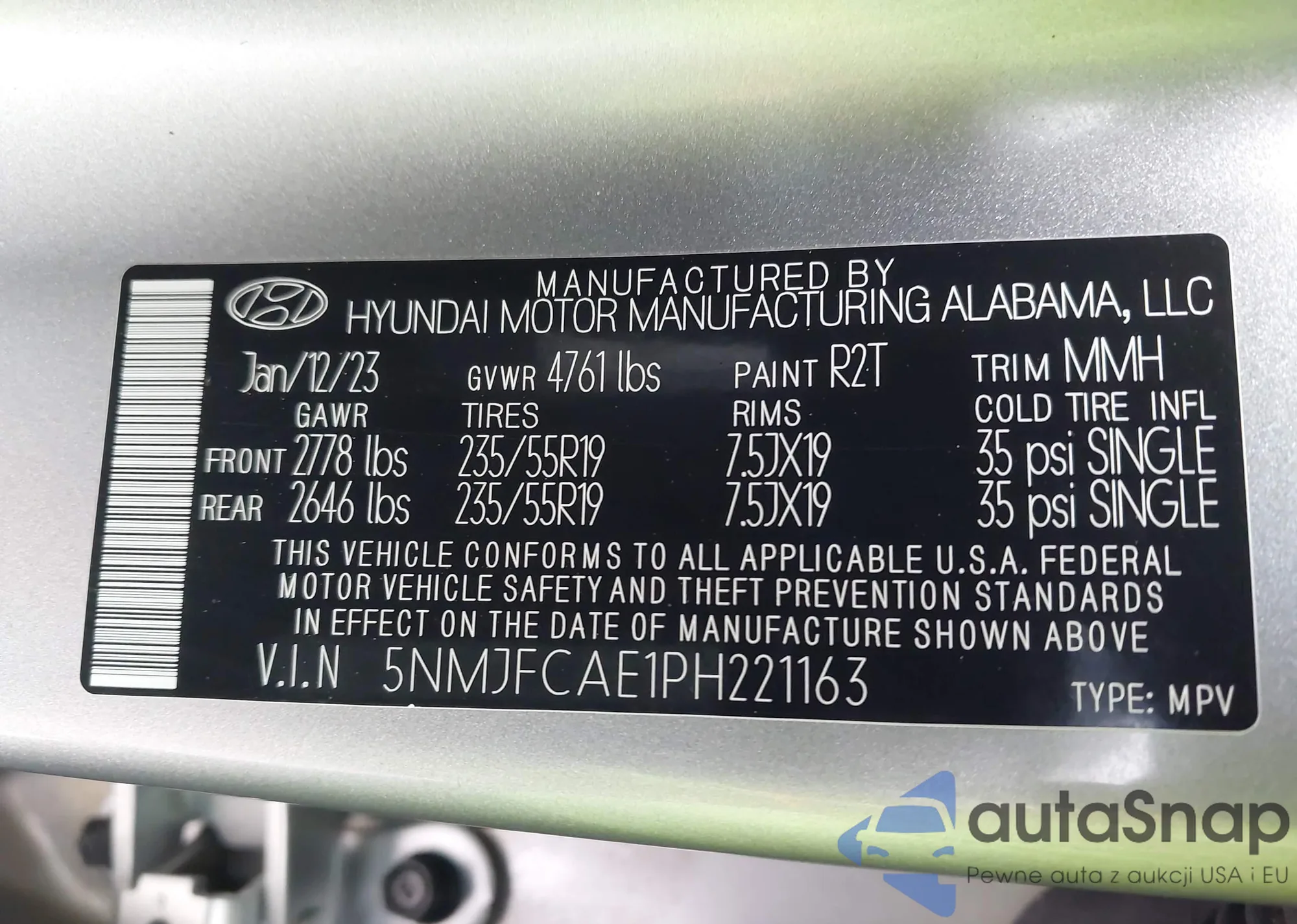 • VIN 5NMJFCAE1PH221163