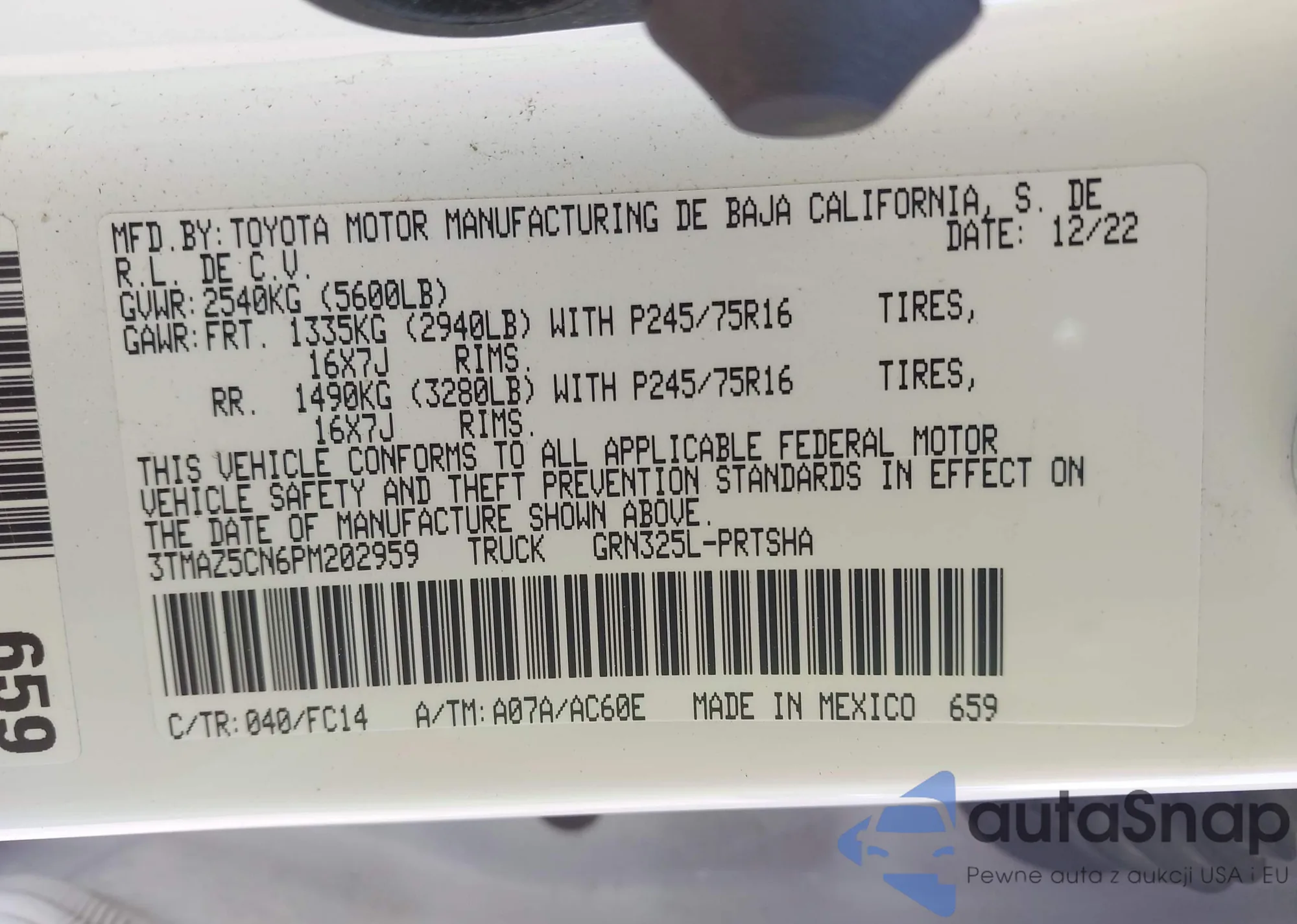 • VIN 3TMAZ5CN6PM202959