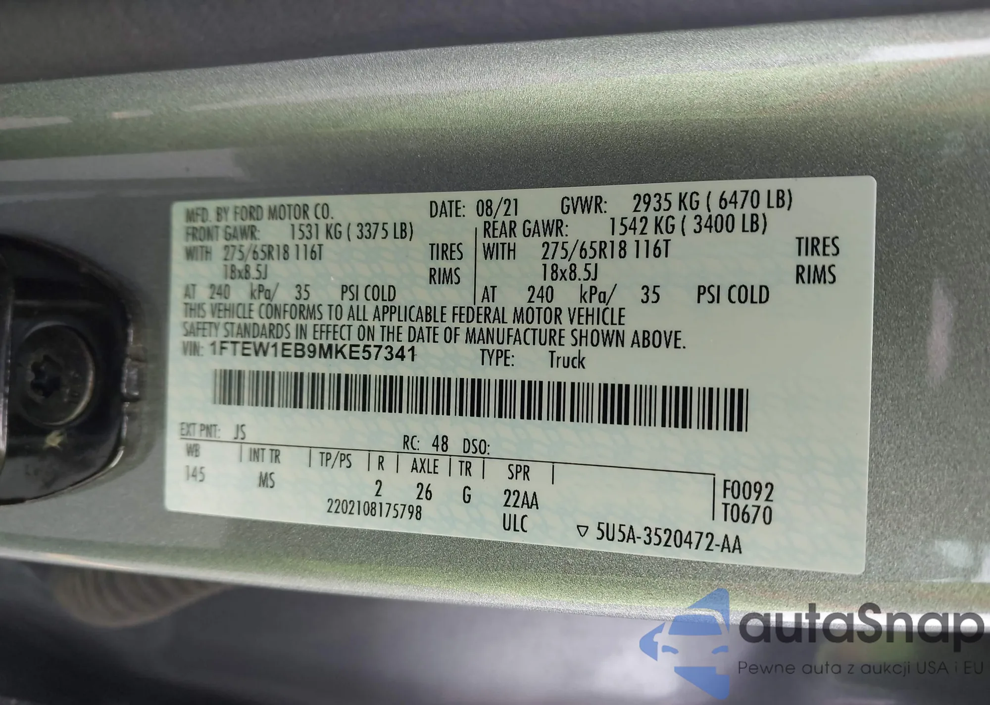 LOT: 44116700 VIN: 1FTEW1EB9MKE57341