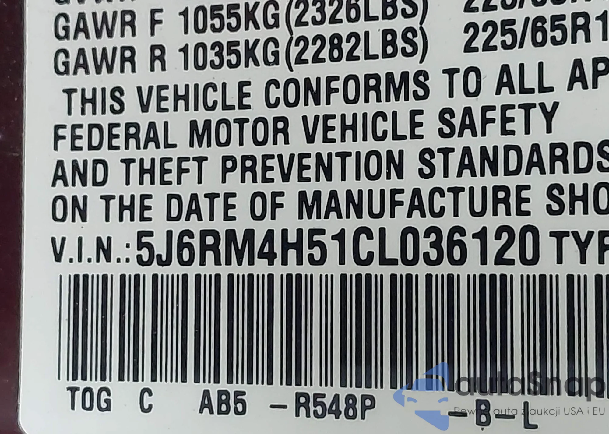 LOT: 43833645 VIN: 5UXKT0C58J0V99012