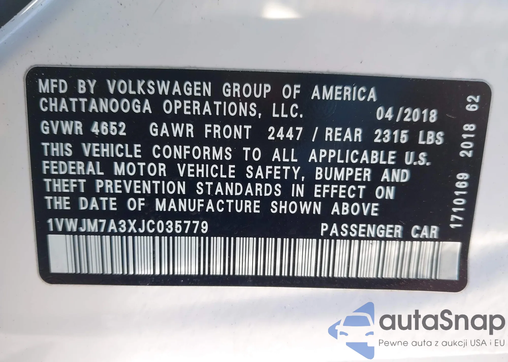 • VIN 1VWJM7A3XJC035779