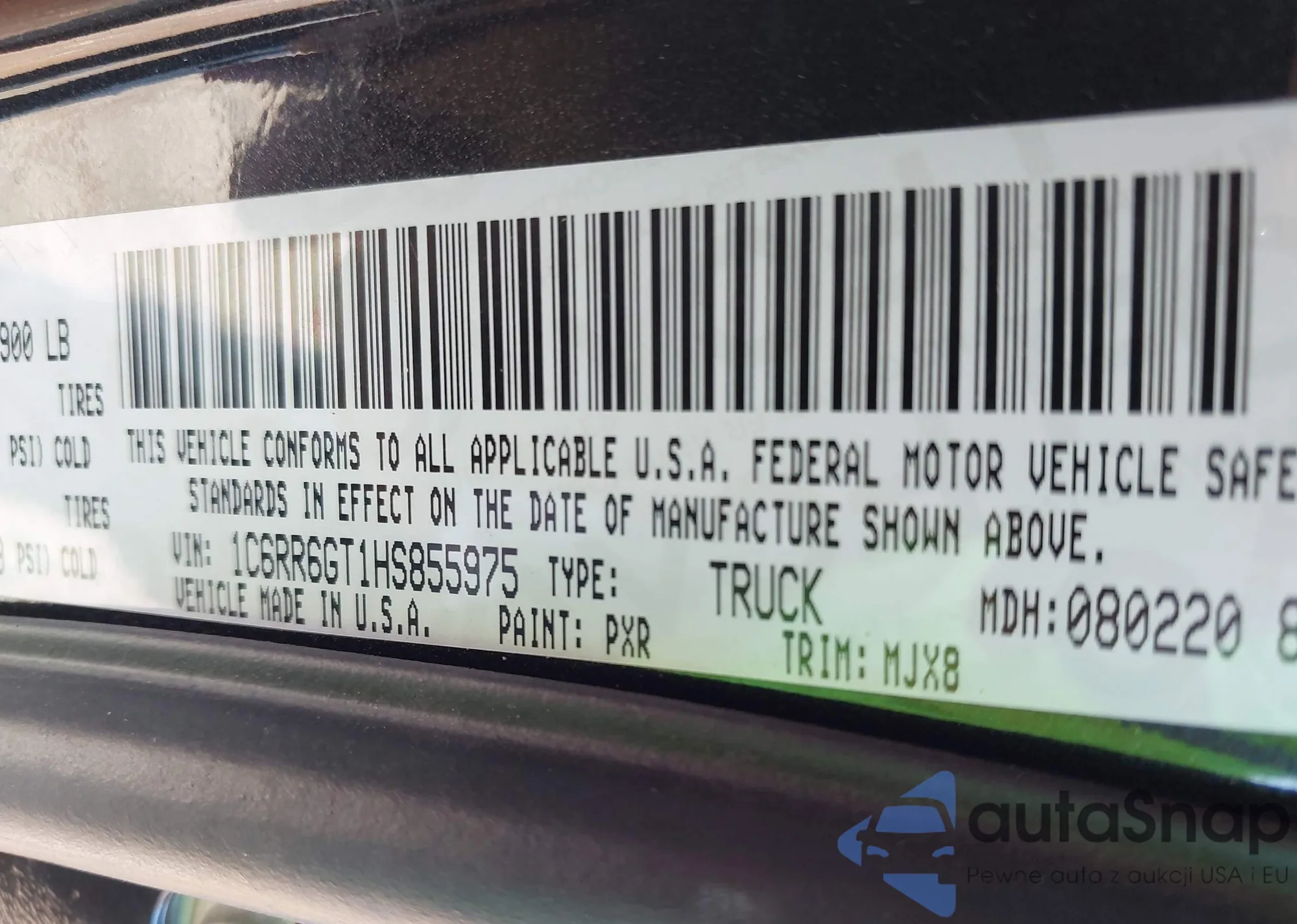 • VIN 1C6RR6GT1HS855975