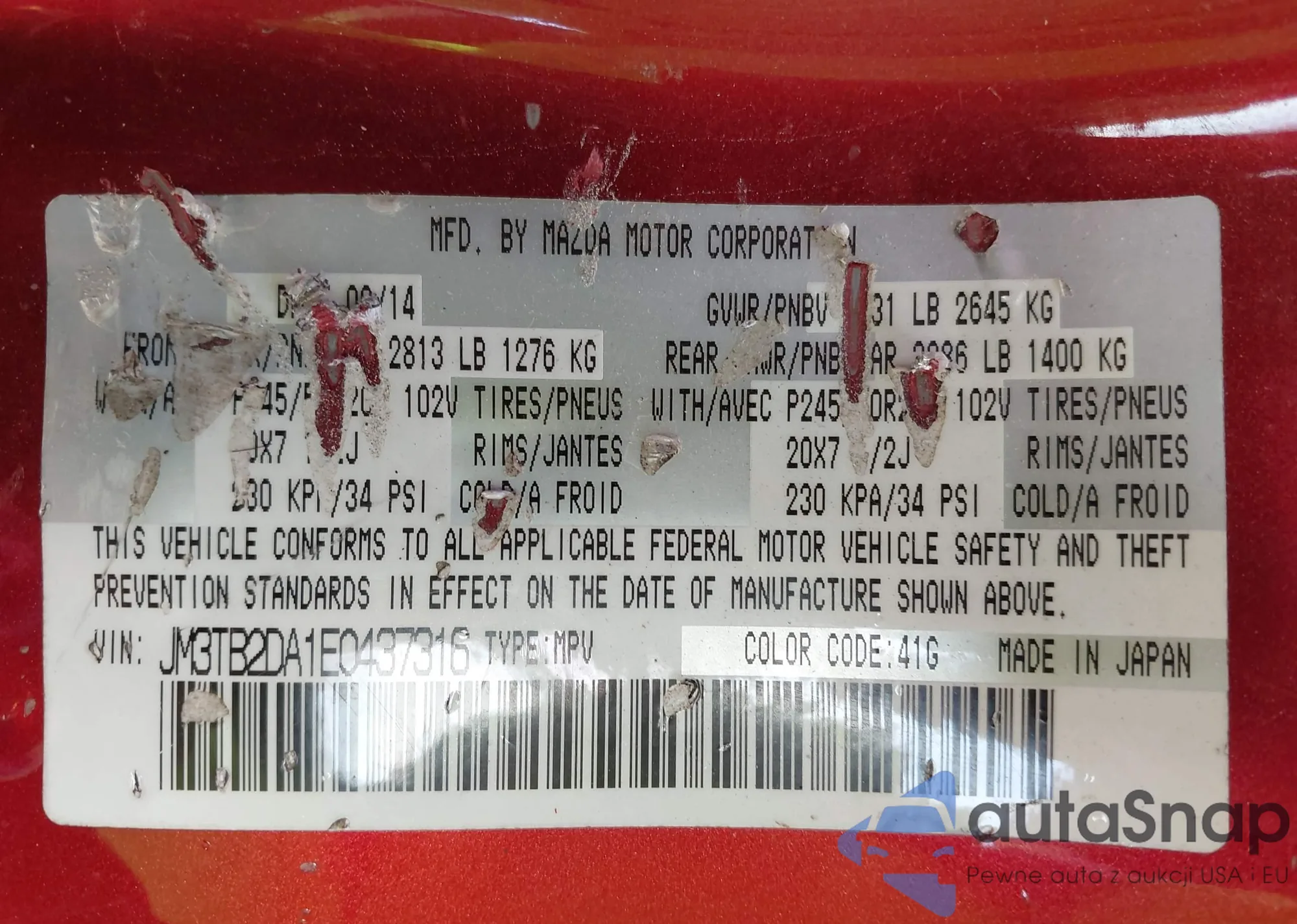 LOT: 44044107 VIN: JM3TB2DA1E0437316