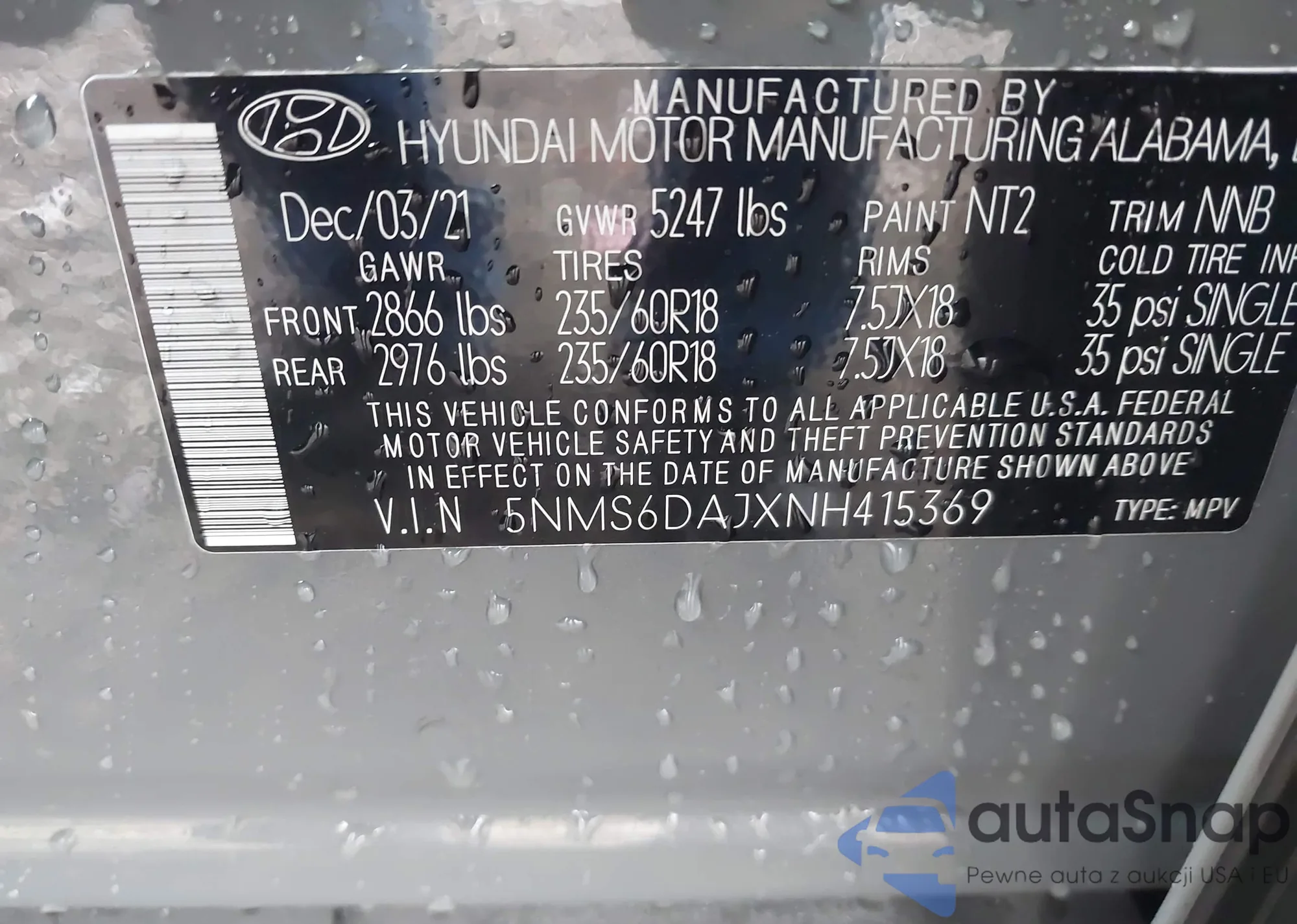 • VIN 5NMS6DAJXNH415369
