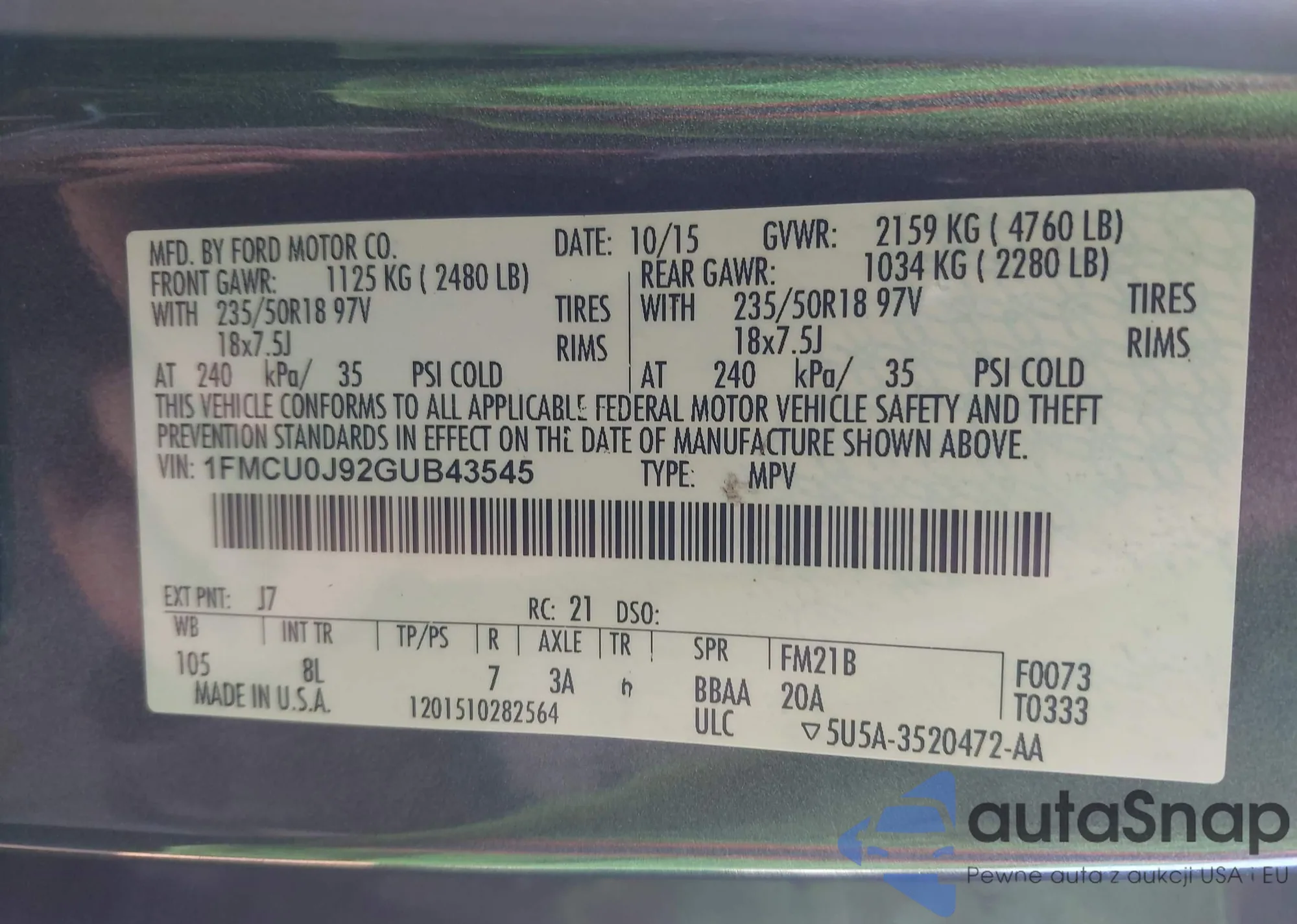 • VIN 1FMCU0J92GUB43545