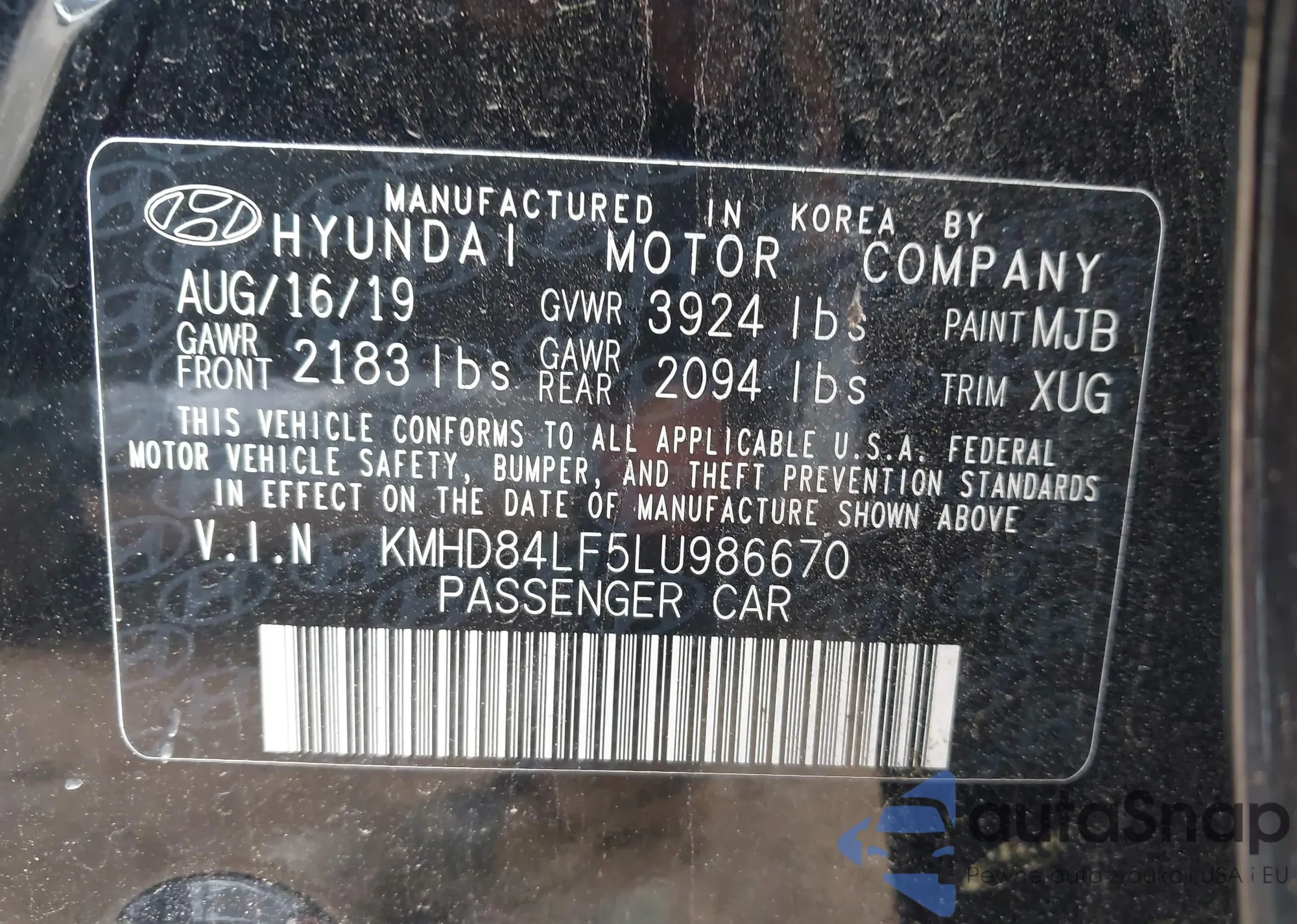 • VIN KMHD84LF5LU986670