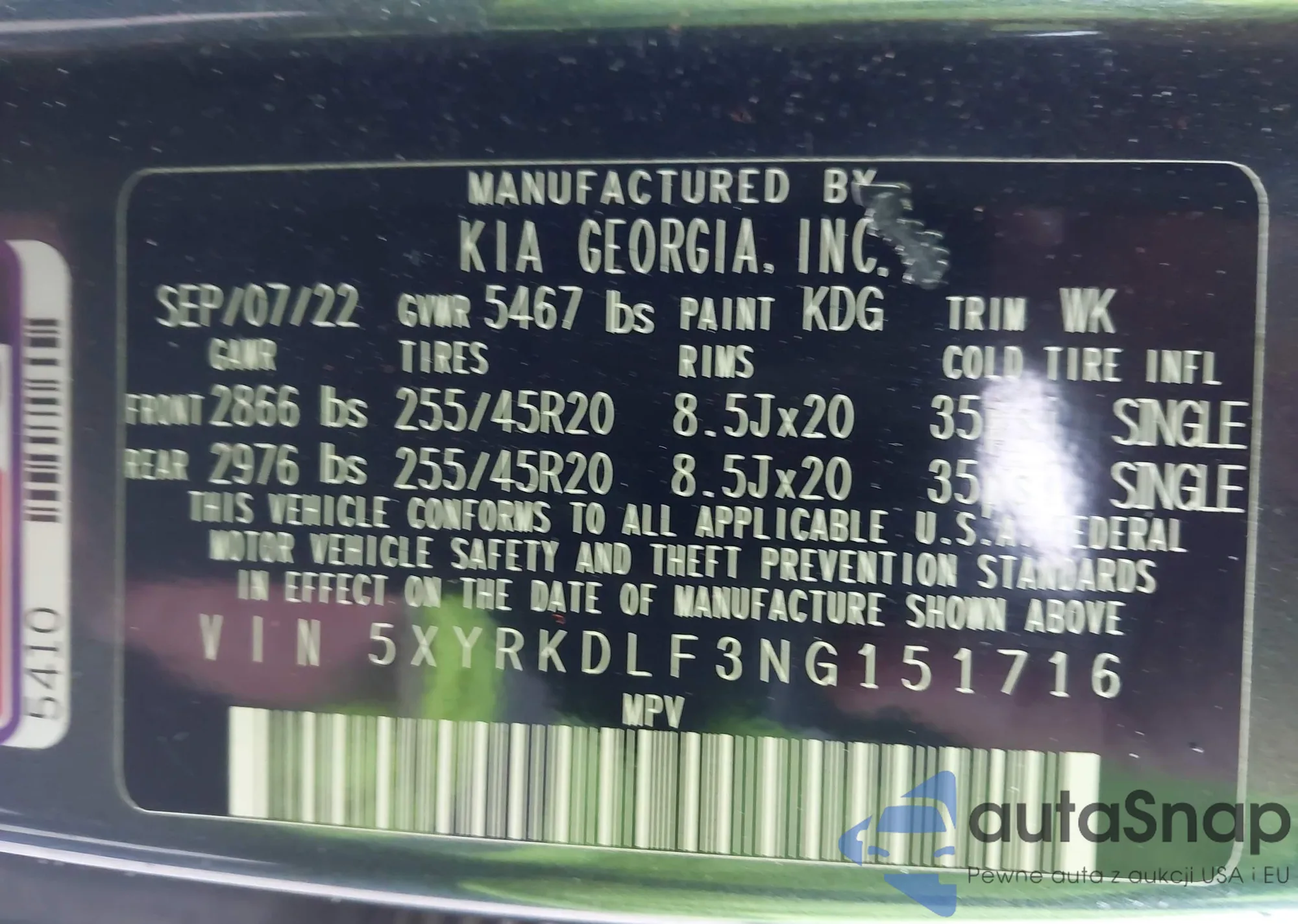 • VIN 5XYRKDLF3NG151716