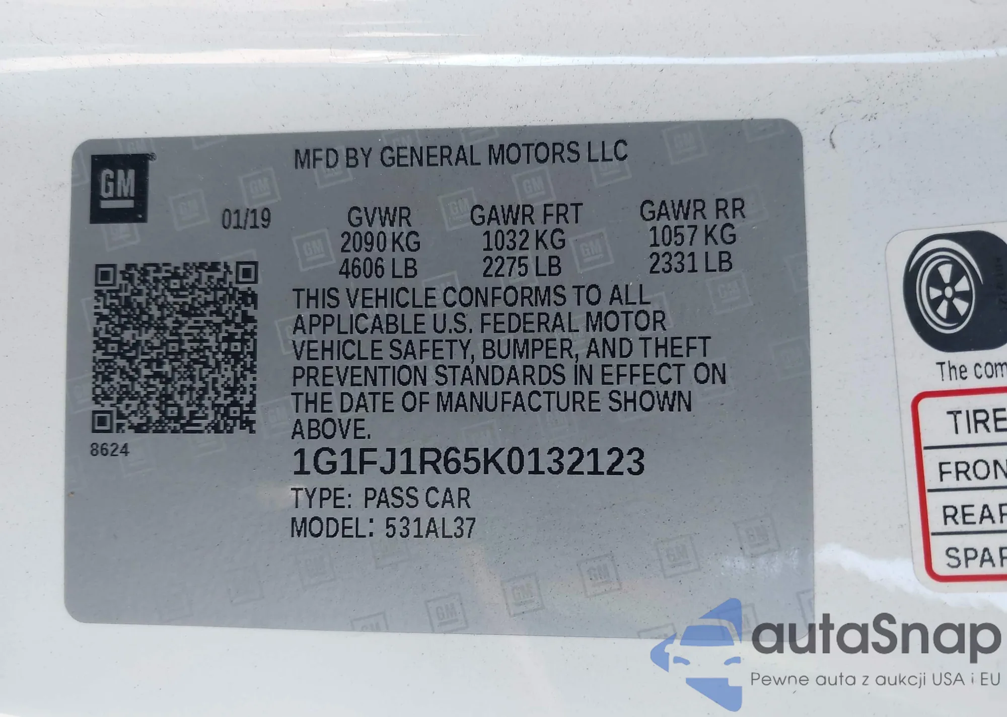 • VIN 1G1FJ1R65K0132123