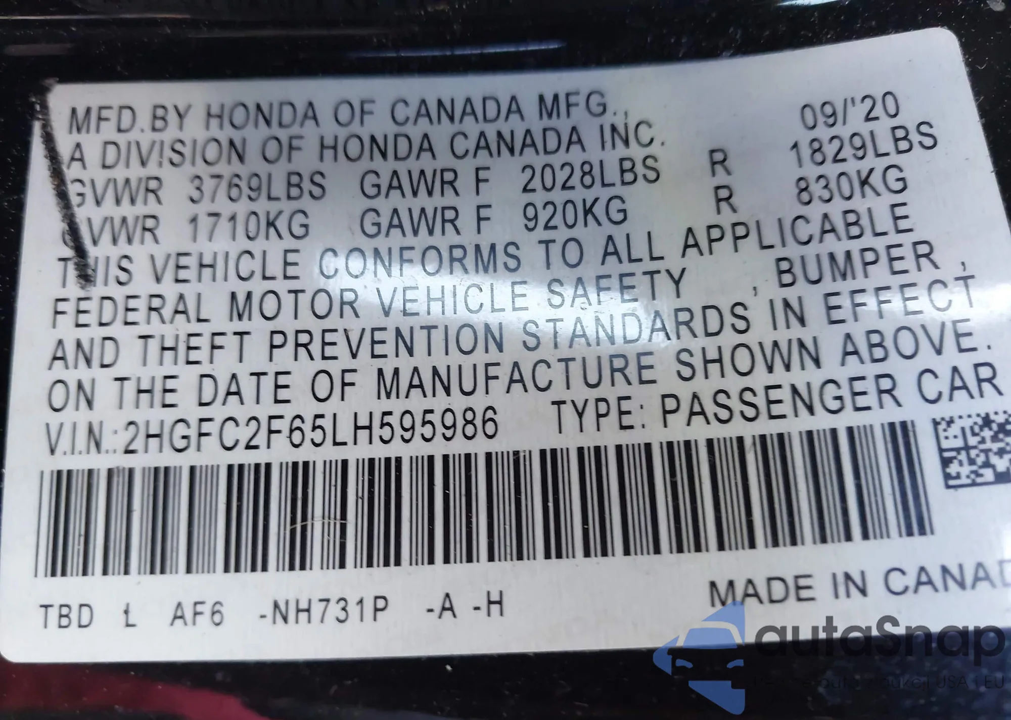 • VIN 2HGFC2F65LH595986