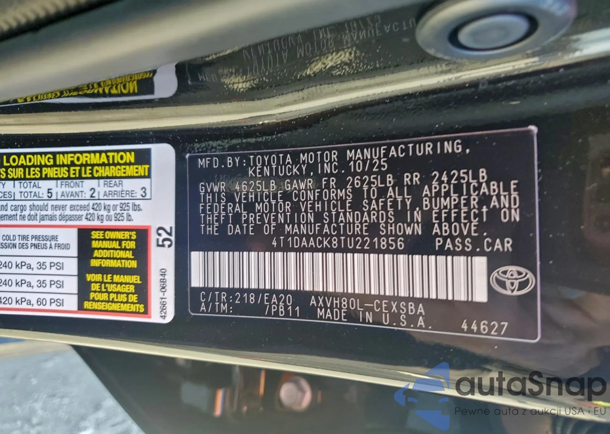 • VIN 4T1DAACK8TU221856