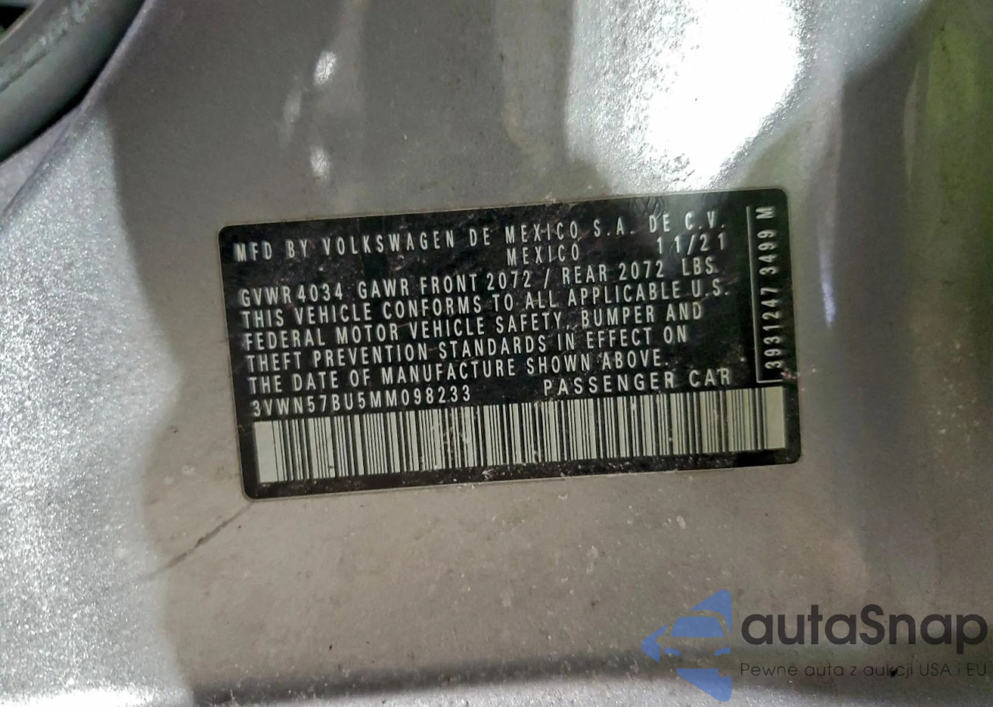 • VIN 3VWN57BU5MM098233