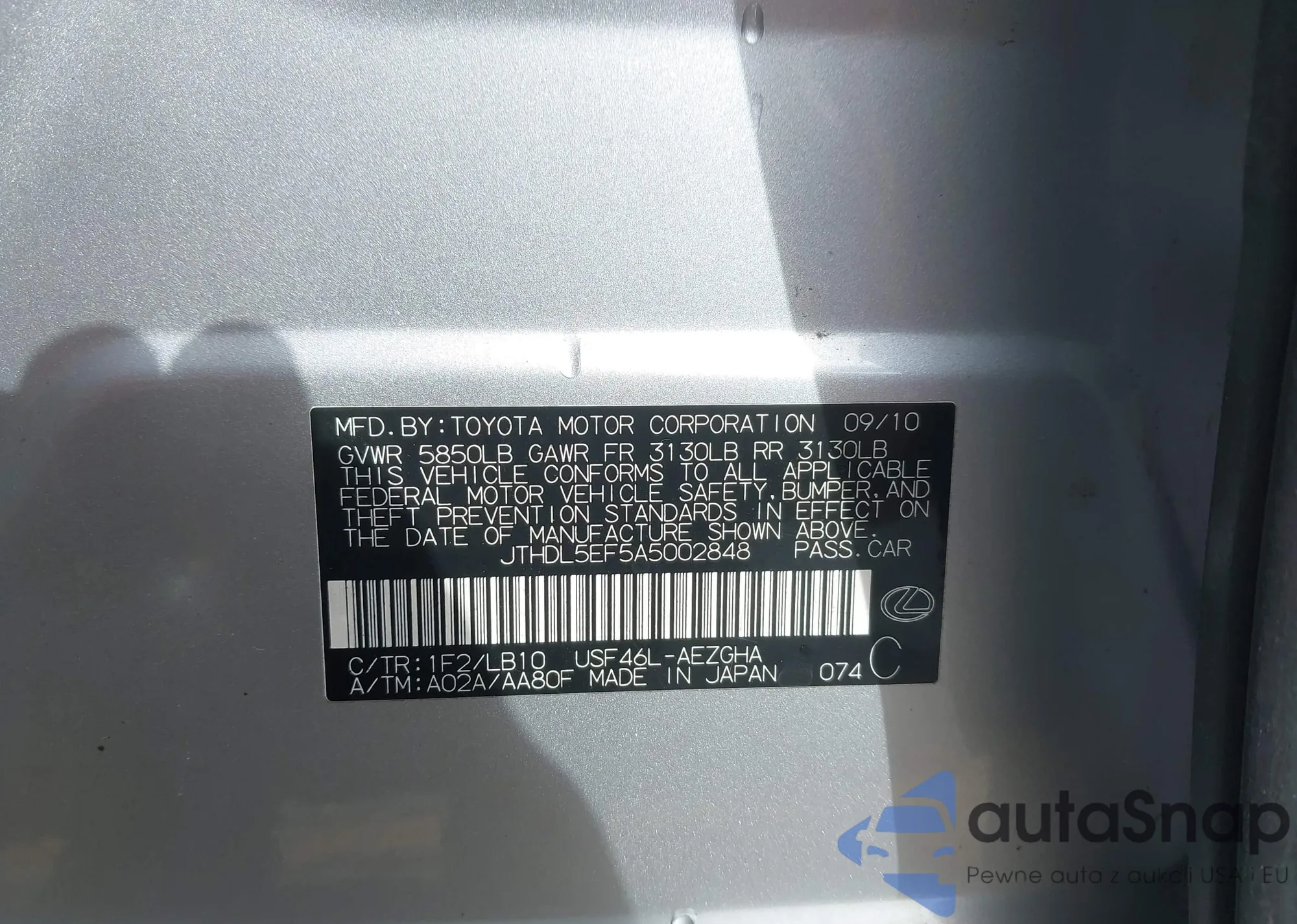 LOT: 43747705 VIN: JTDAAAAF2R3025374