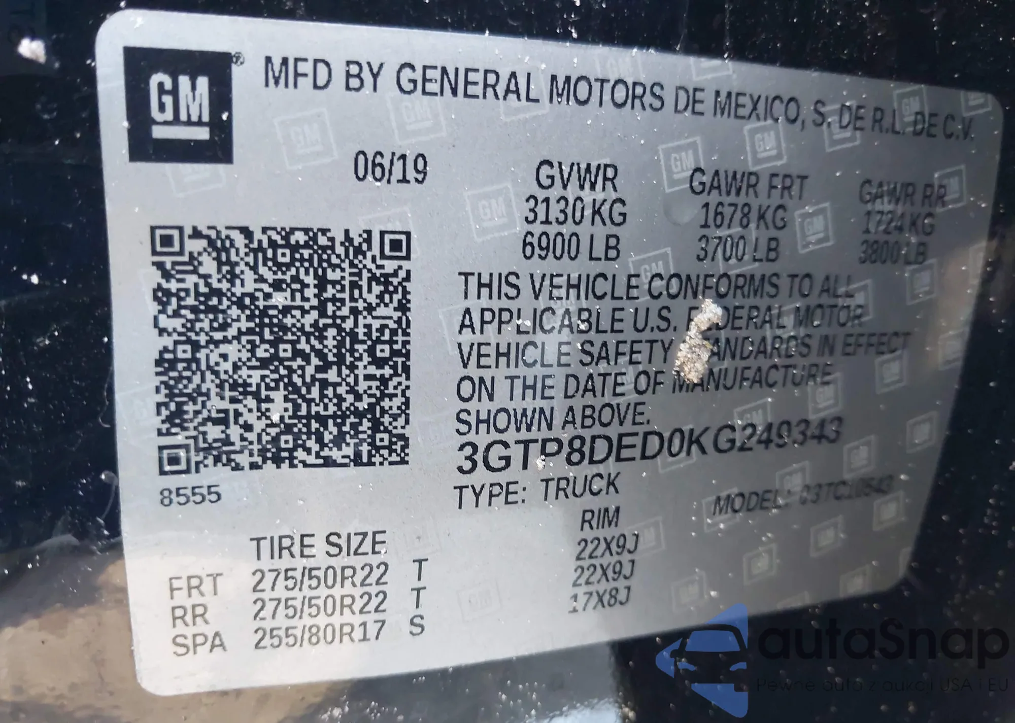 • VIN 1GTR9AEH3MZ265997