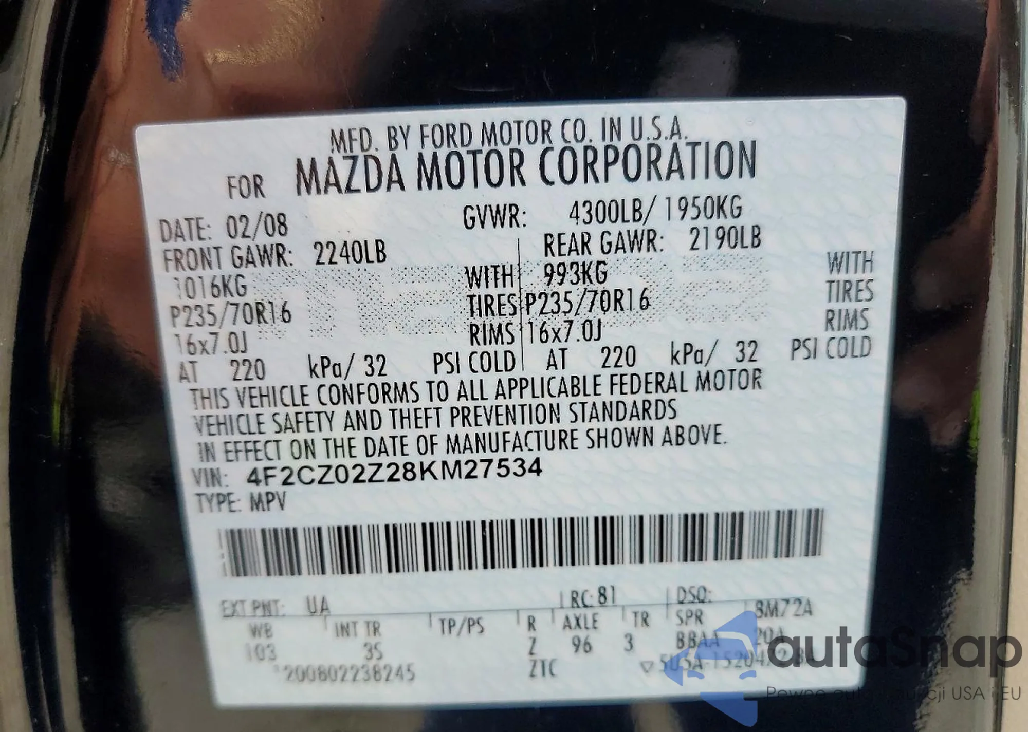 • VIN 4F2CZ02Z28KM27534