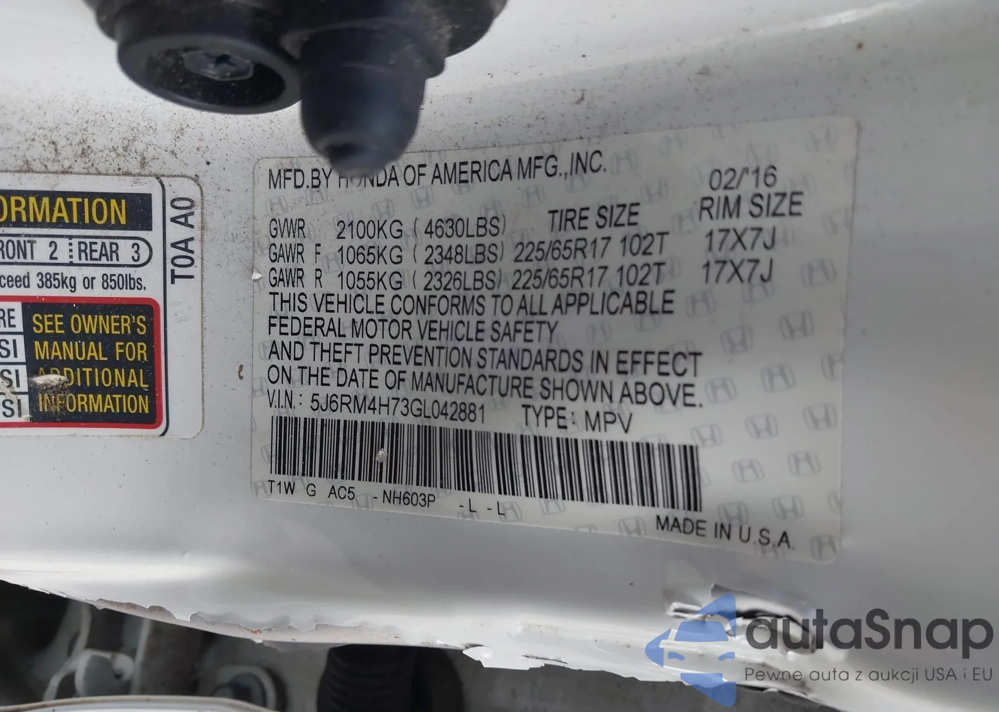 LOT: 44187825 VIN: 3CZRE38568G701394