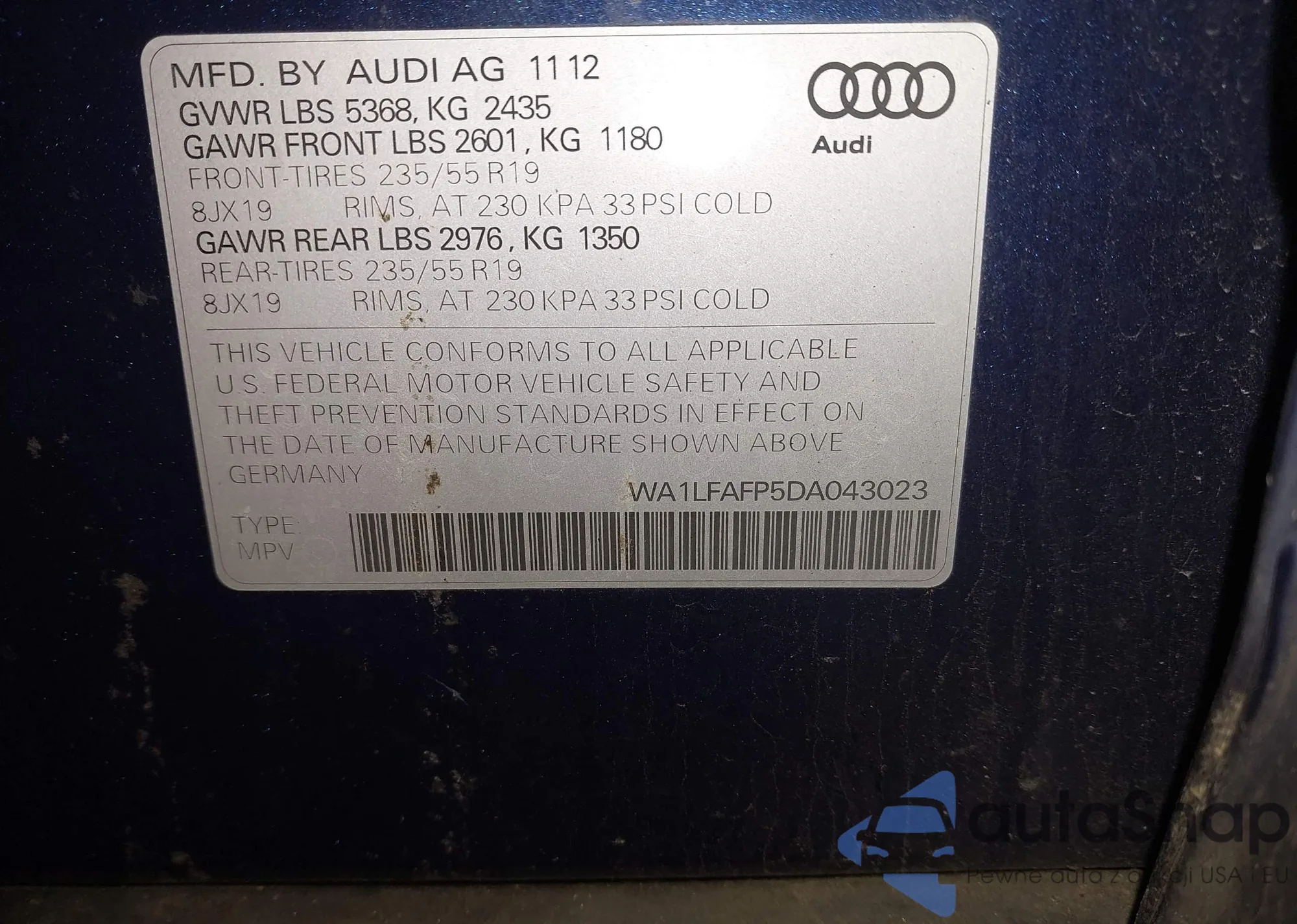 LOT: 43865218 VIN: ZASPAJANXN7D47000