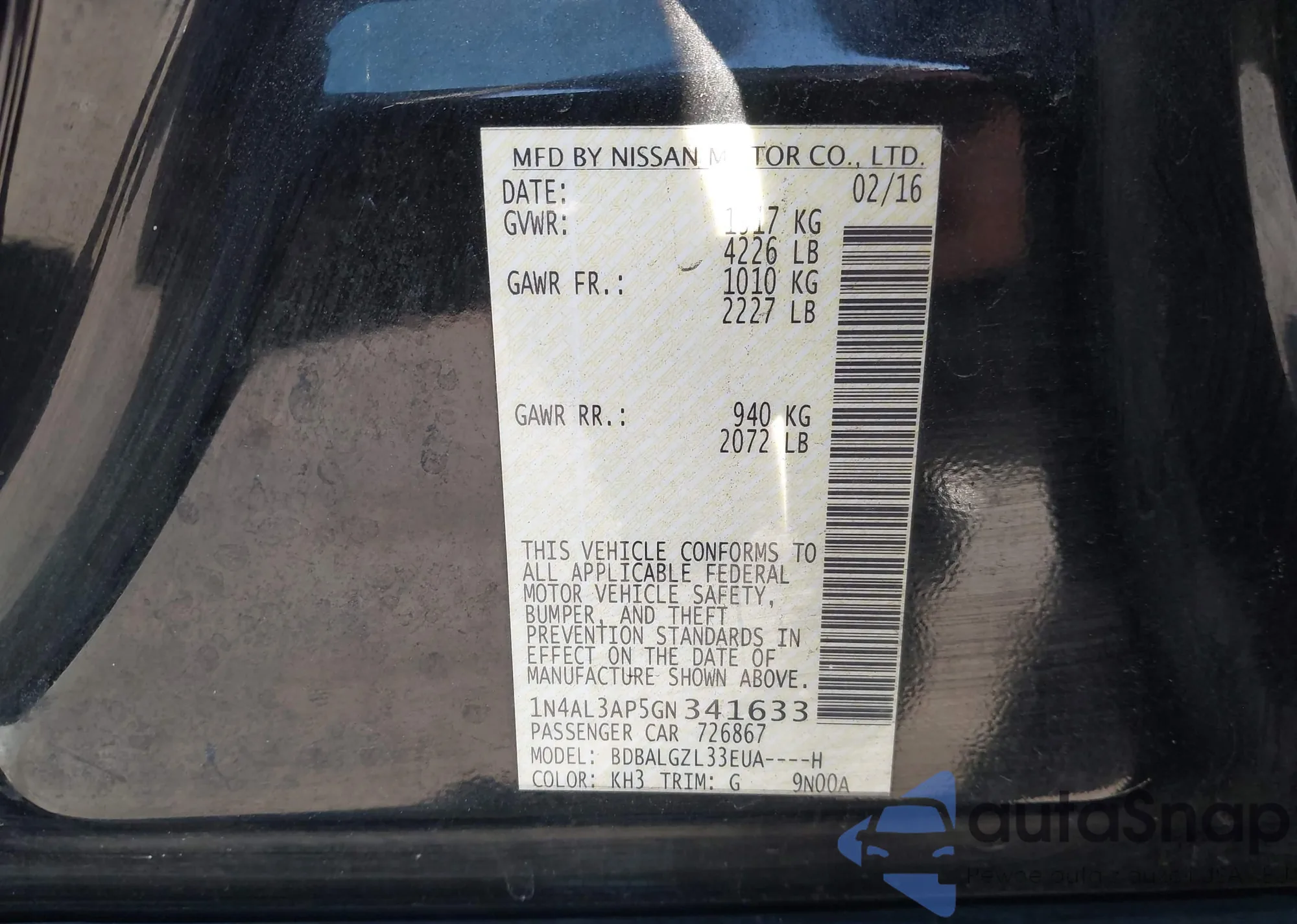 LOT: 44203635 VIN: 1N4AL3AP5GN341633