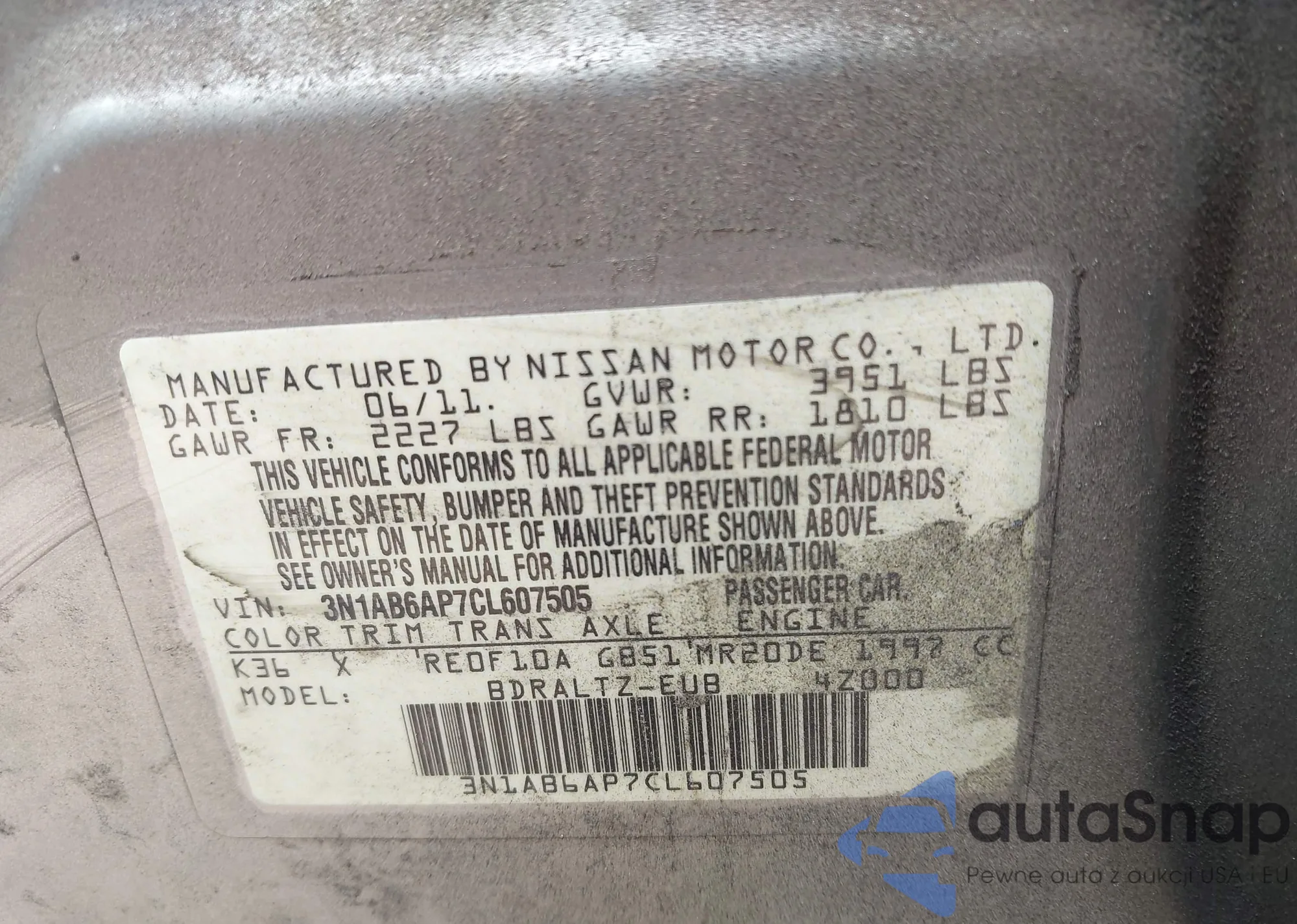 • VIN 3N1AB6AP7CL607505