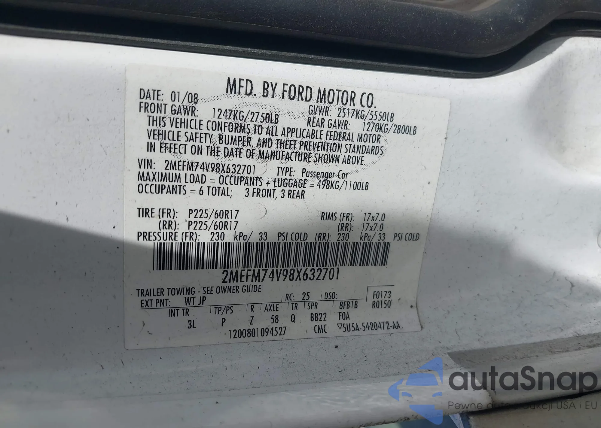LOT: 43772394 VIN: 2MEFM74V98X632701