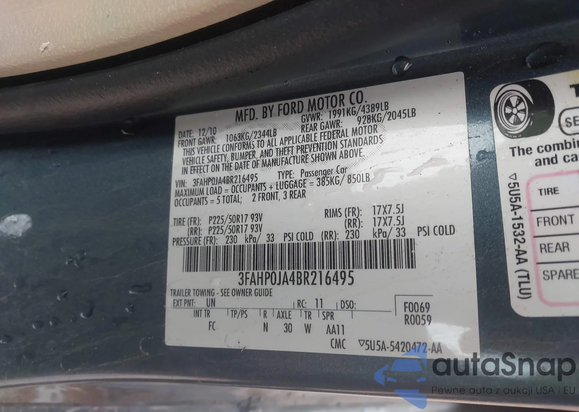 • VIN 3FAHP0JA4BR216495