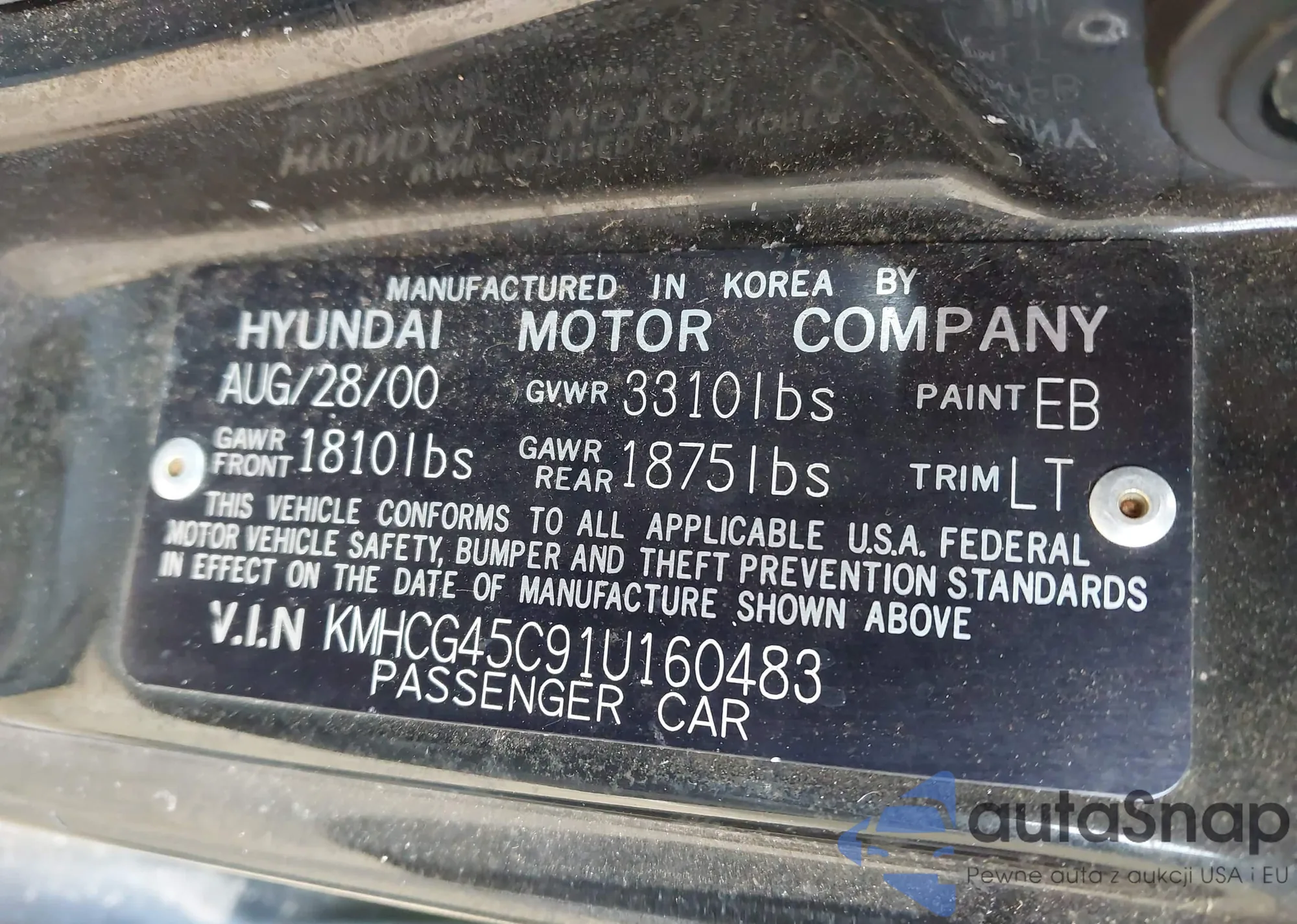 LOT: 44067467 VIN: KMHCG45C91U160483