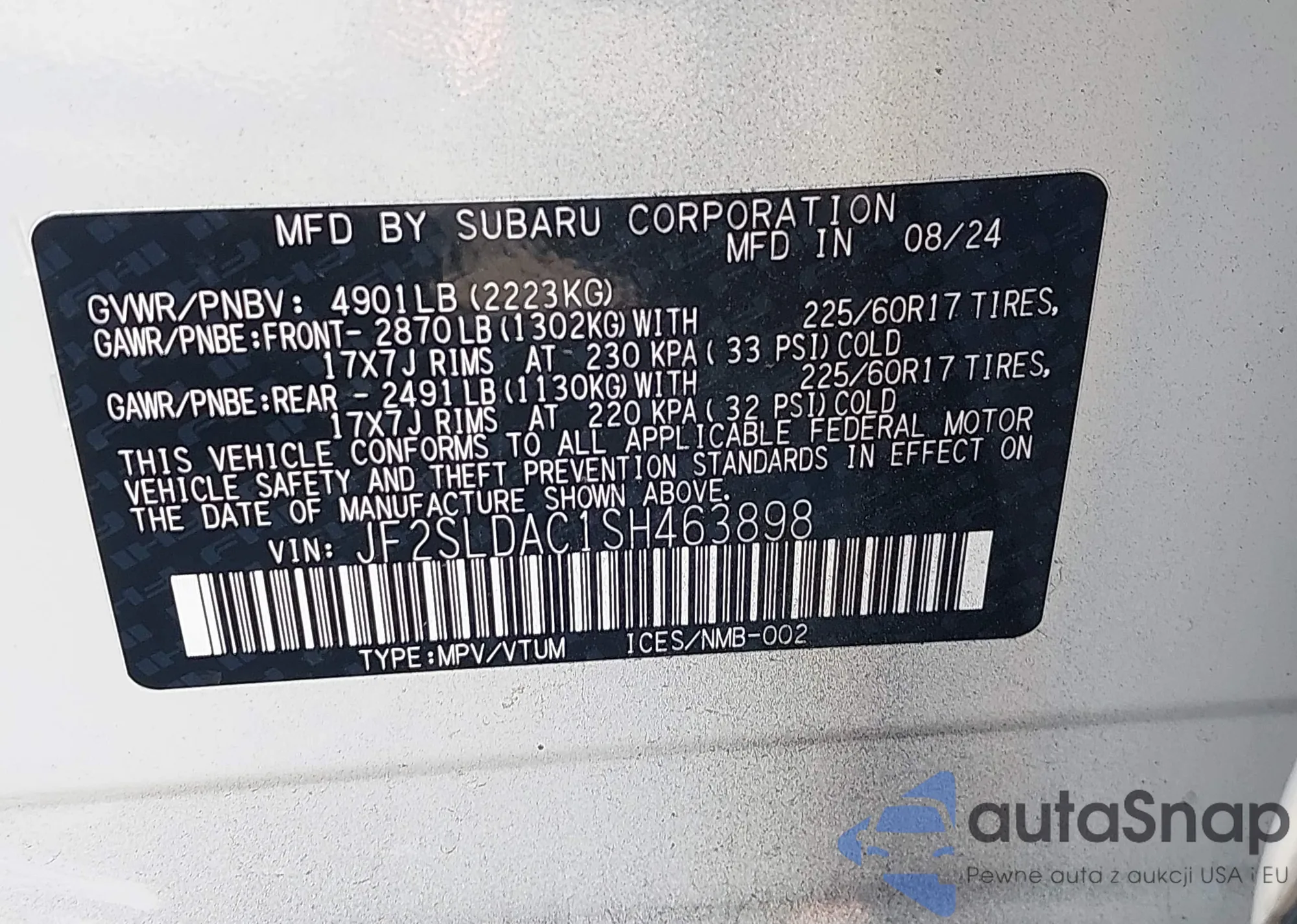 LOT: 43766592 VIN: JF2SLDAC1SH463898