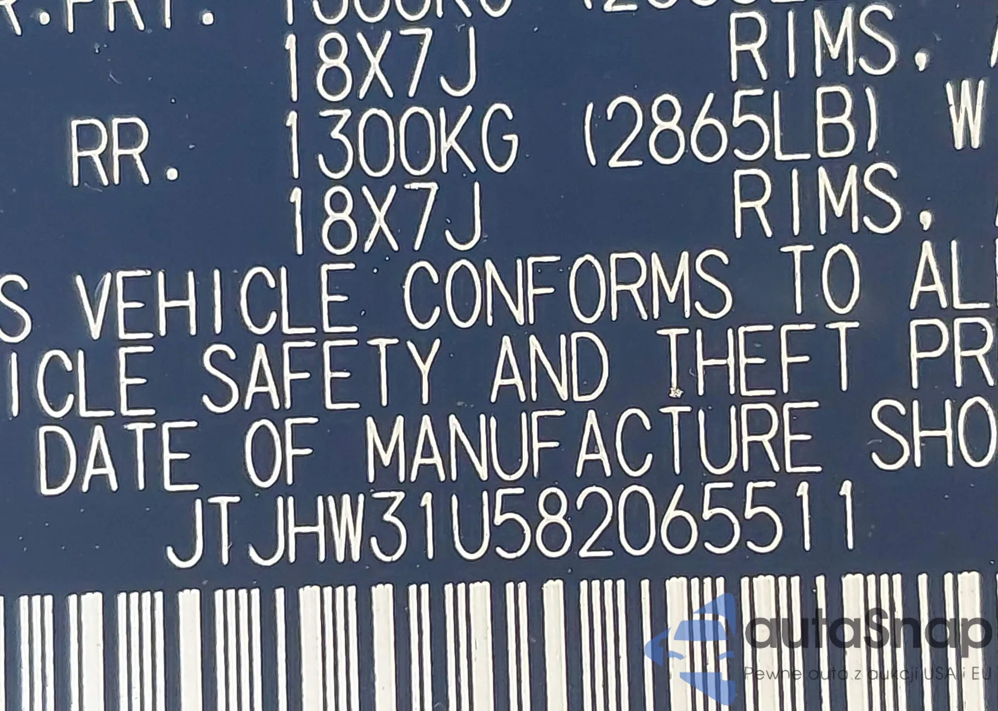 LOT: 44212111 VIN: JTJHW31U582065511