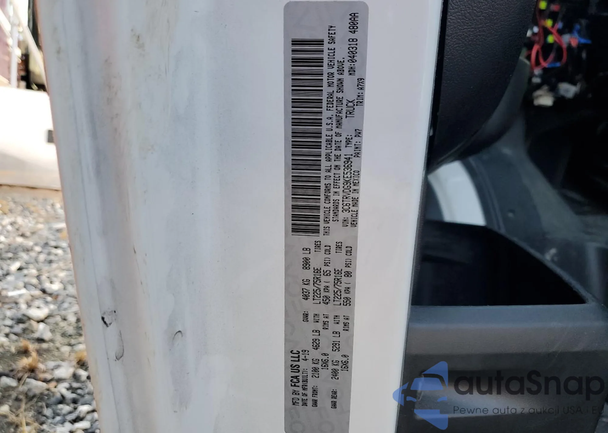 LOT: 59409005 VIN: 3C6TRVDG9KE536941
