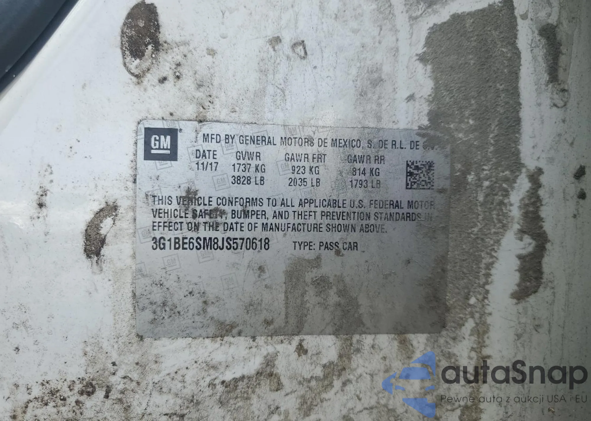 LOT: 63690245 VIN: 3G1BE6SM8JS570618