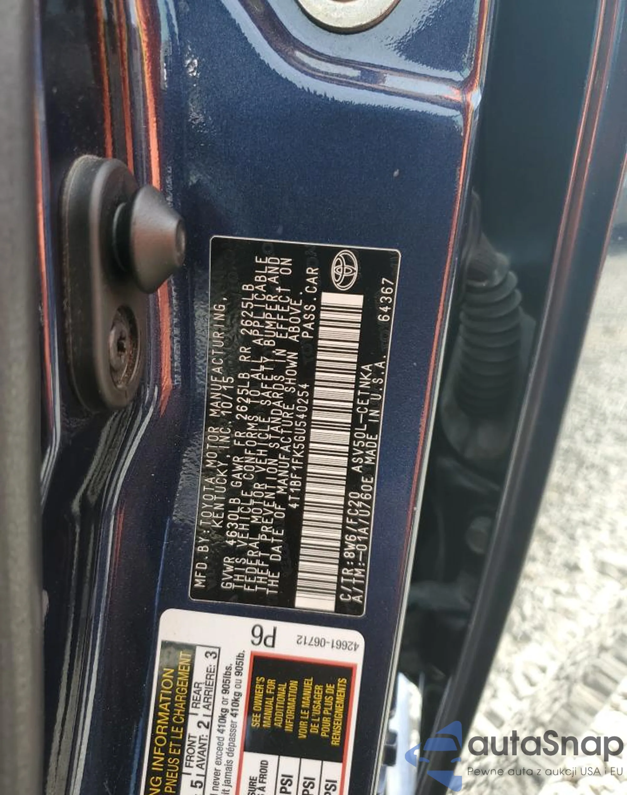 • VIN 4T1BF1FK5GU540254