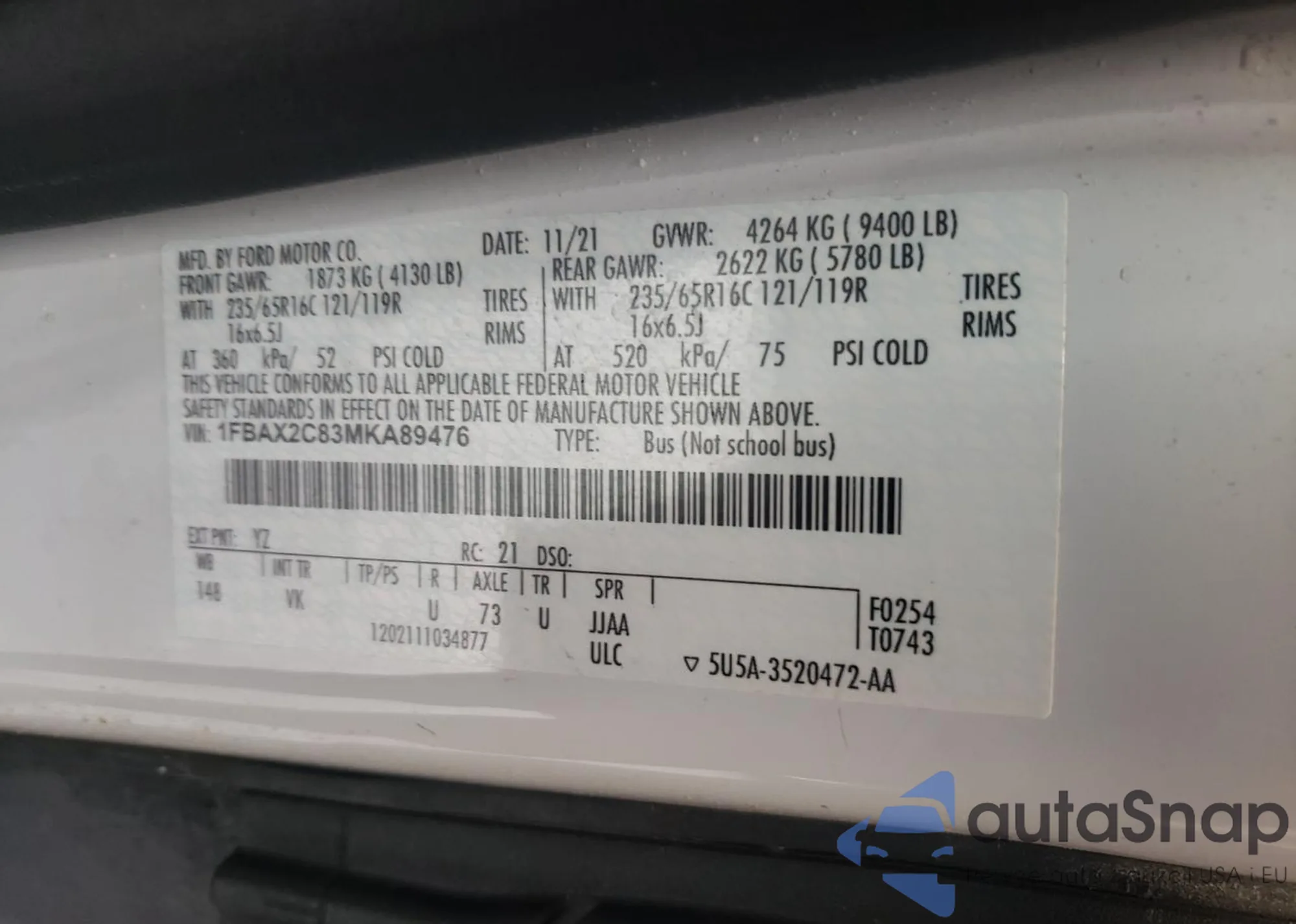 • VIN 2FMDK4KC5BBA62047