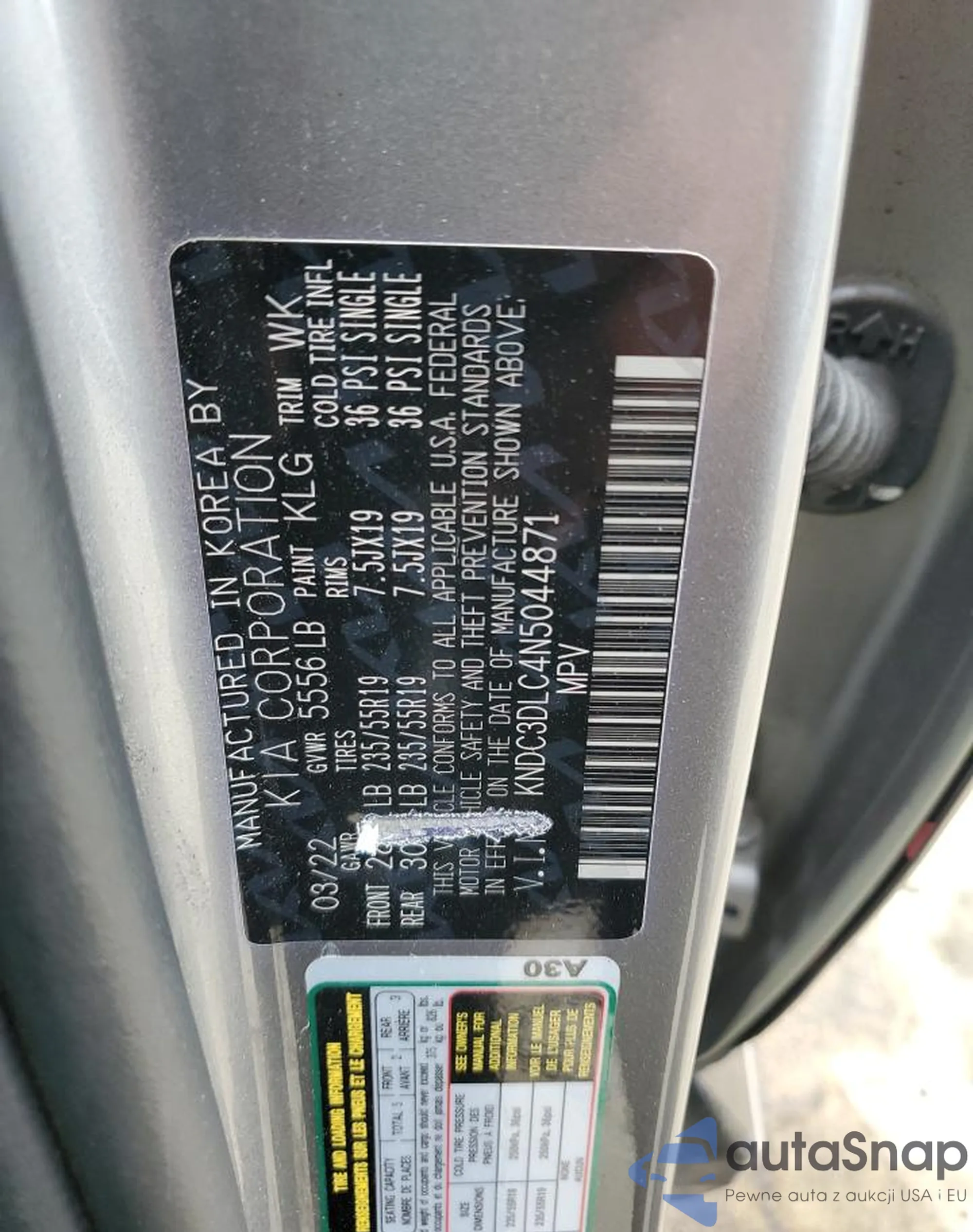 • VIN KNDC3DLC4N5044871