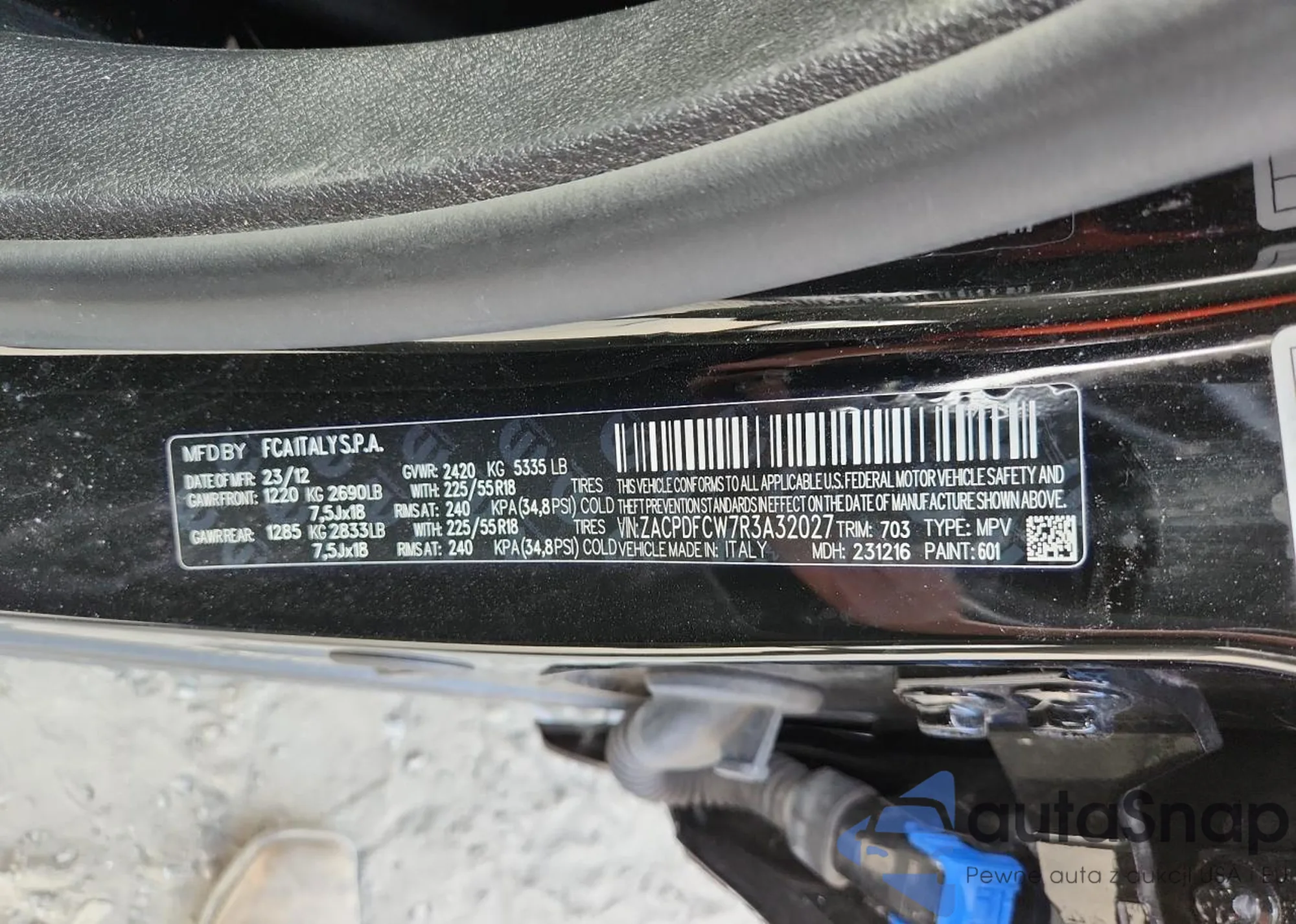 LOT: 81267055 VIN: ZACPDFCW7R3A32027