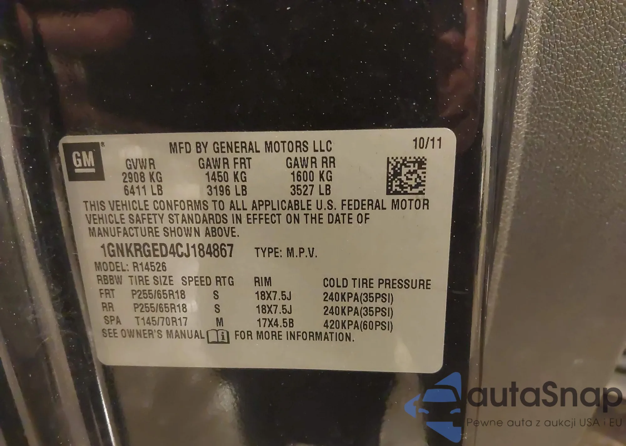LOT: 43917096 VIN: 1GNKRGED4CJ184867