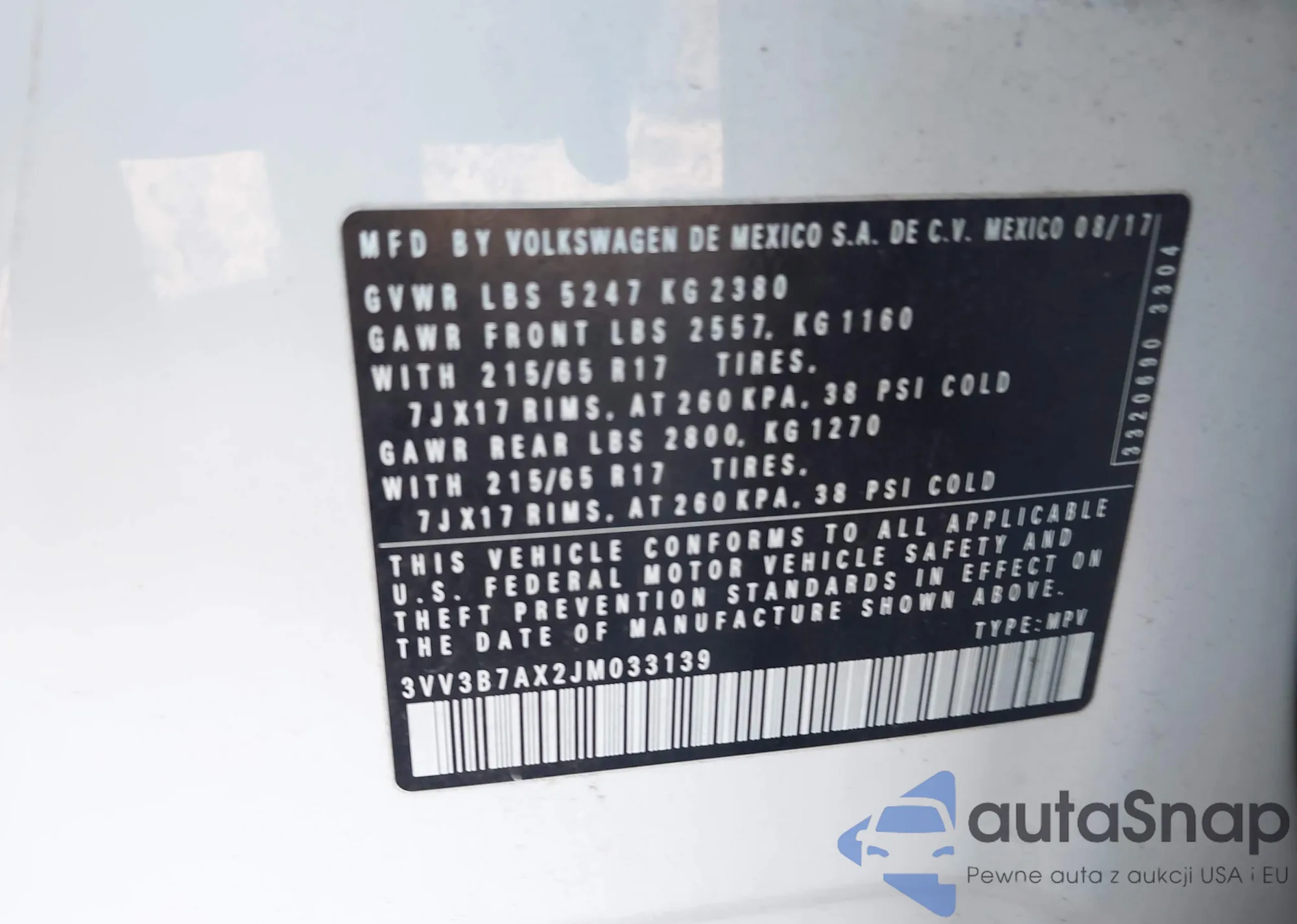 LOT: 43932445 VIN: 3VV3B7AX2JM033139