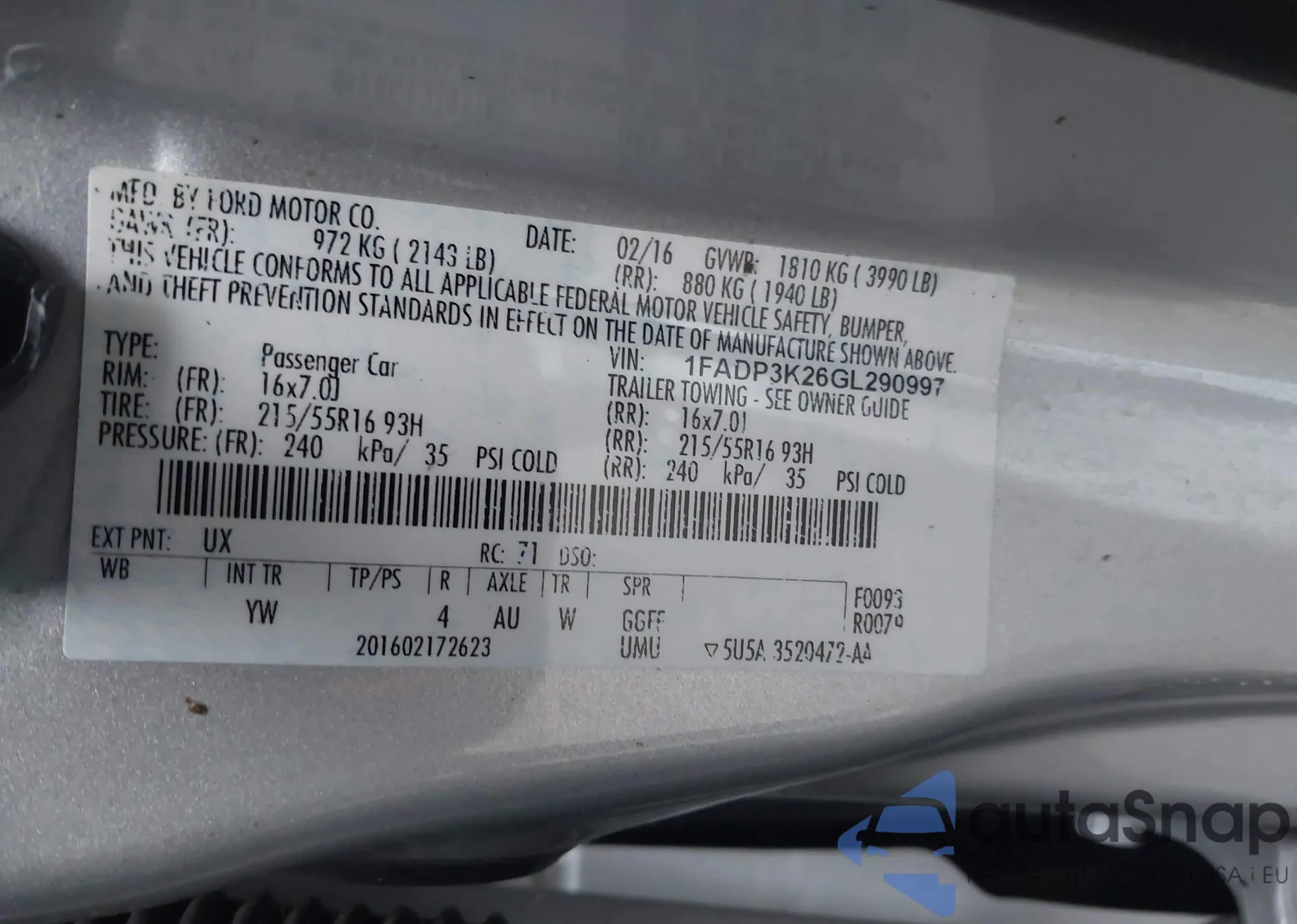 LOT: 44152872 VIN: 1FADP5BU2FL116548