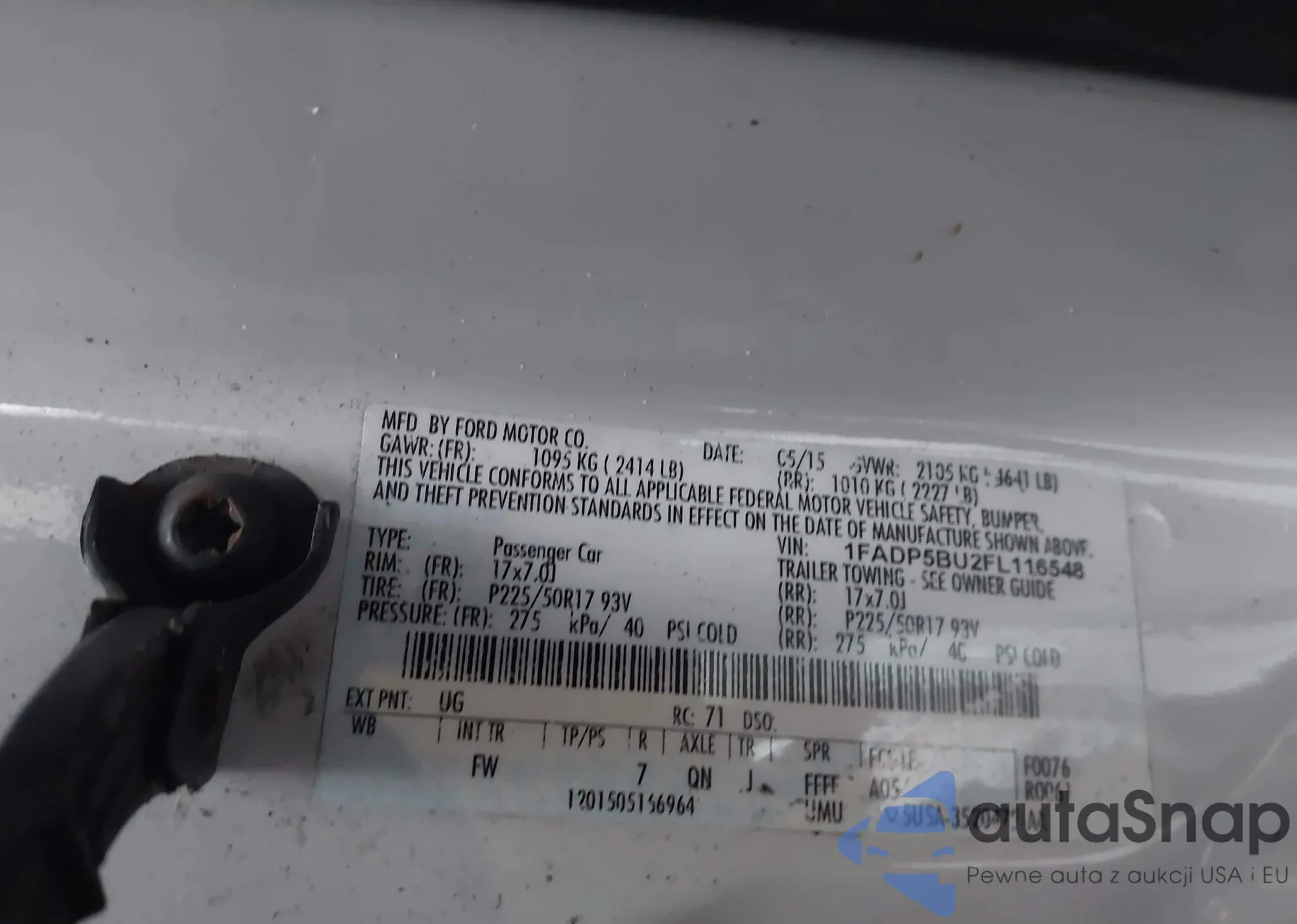 • VIN 1FADP5BU2FL116548